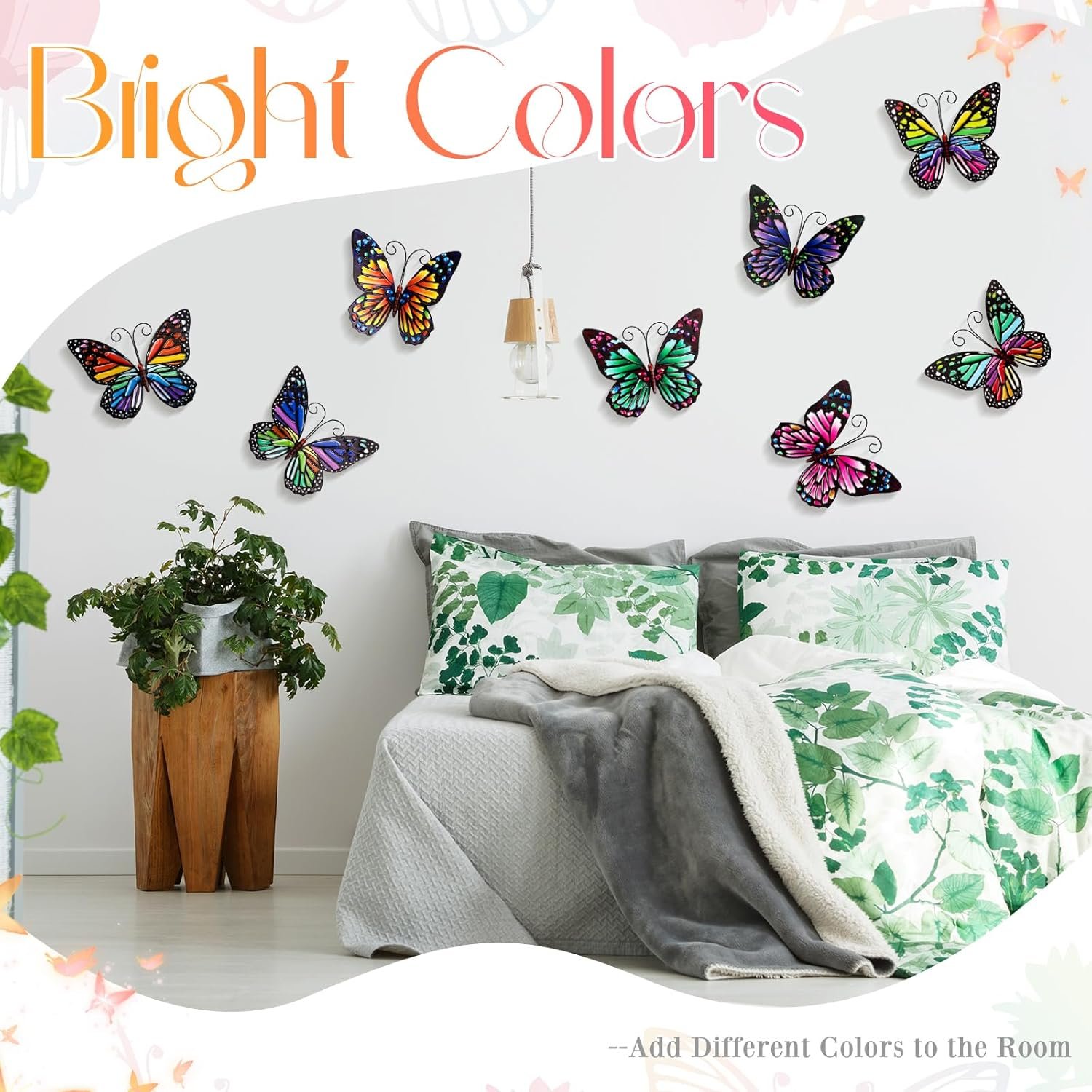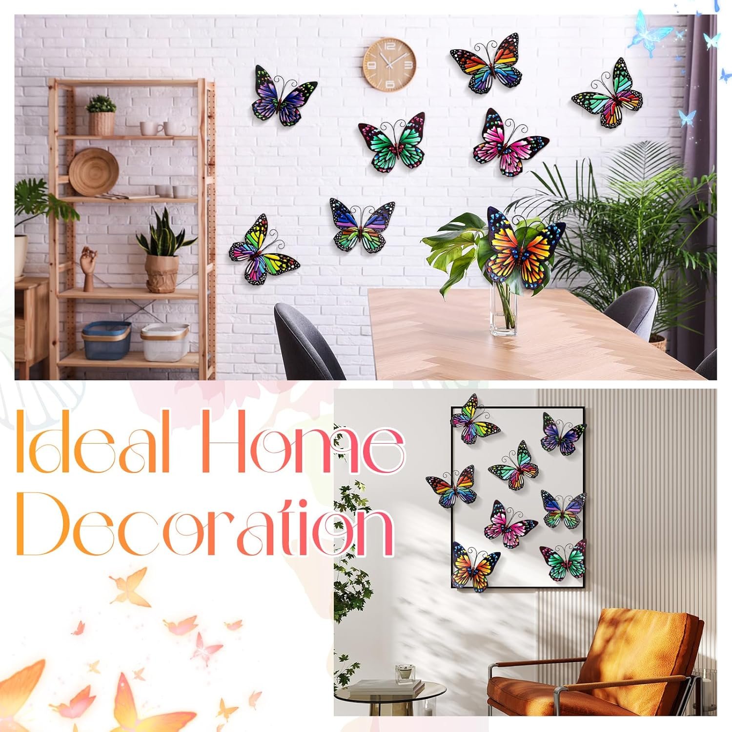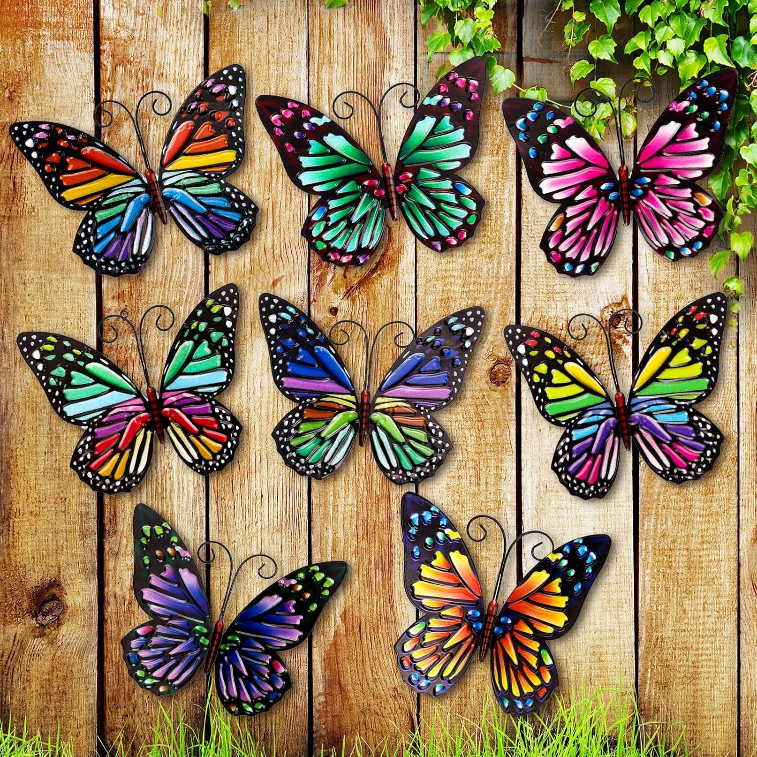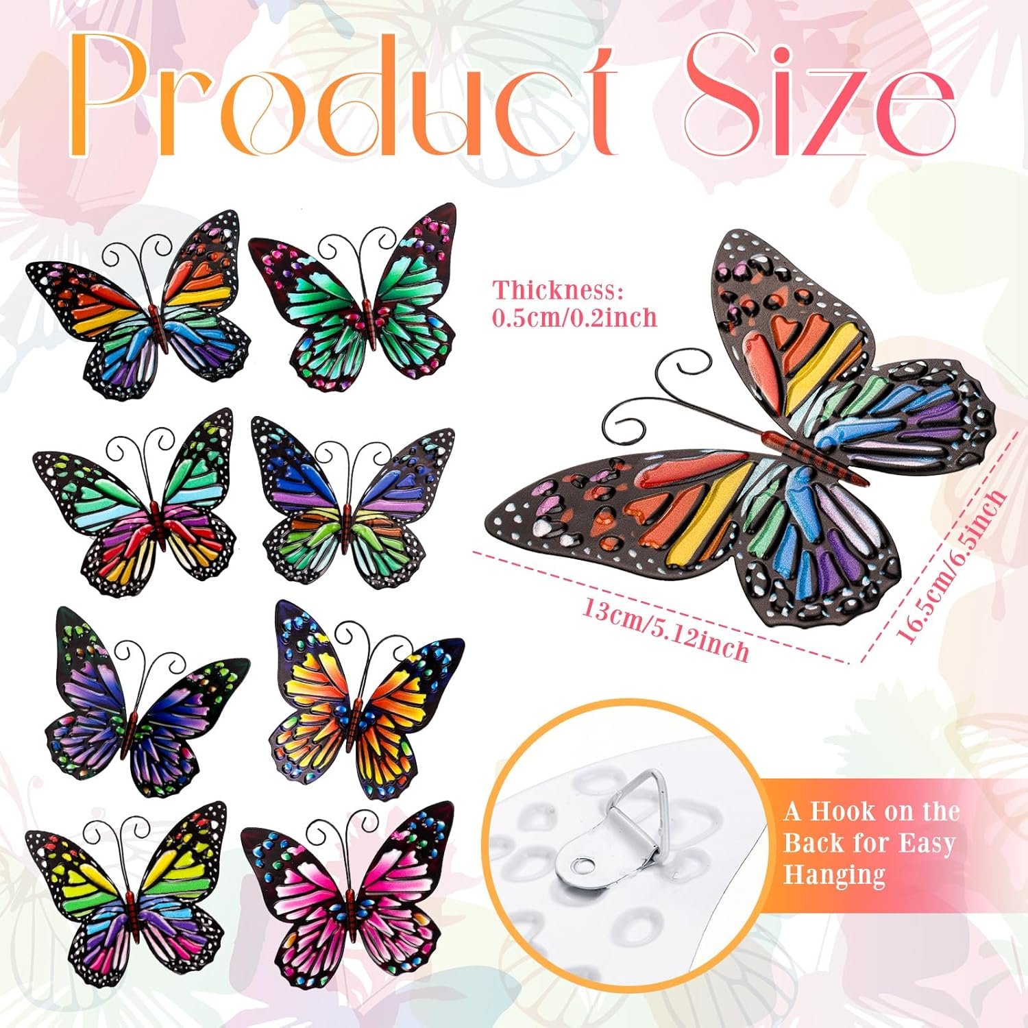 8 Pieces Metal Butterfly Wall Art Decor, 3D Butterfly Hanging Wall Decor Sculpture for Balcony Patio Living Room Garden Outdoor Fence Decoration(Cute Style)