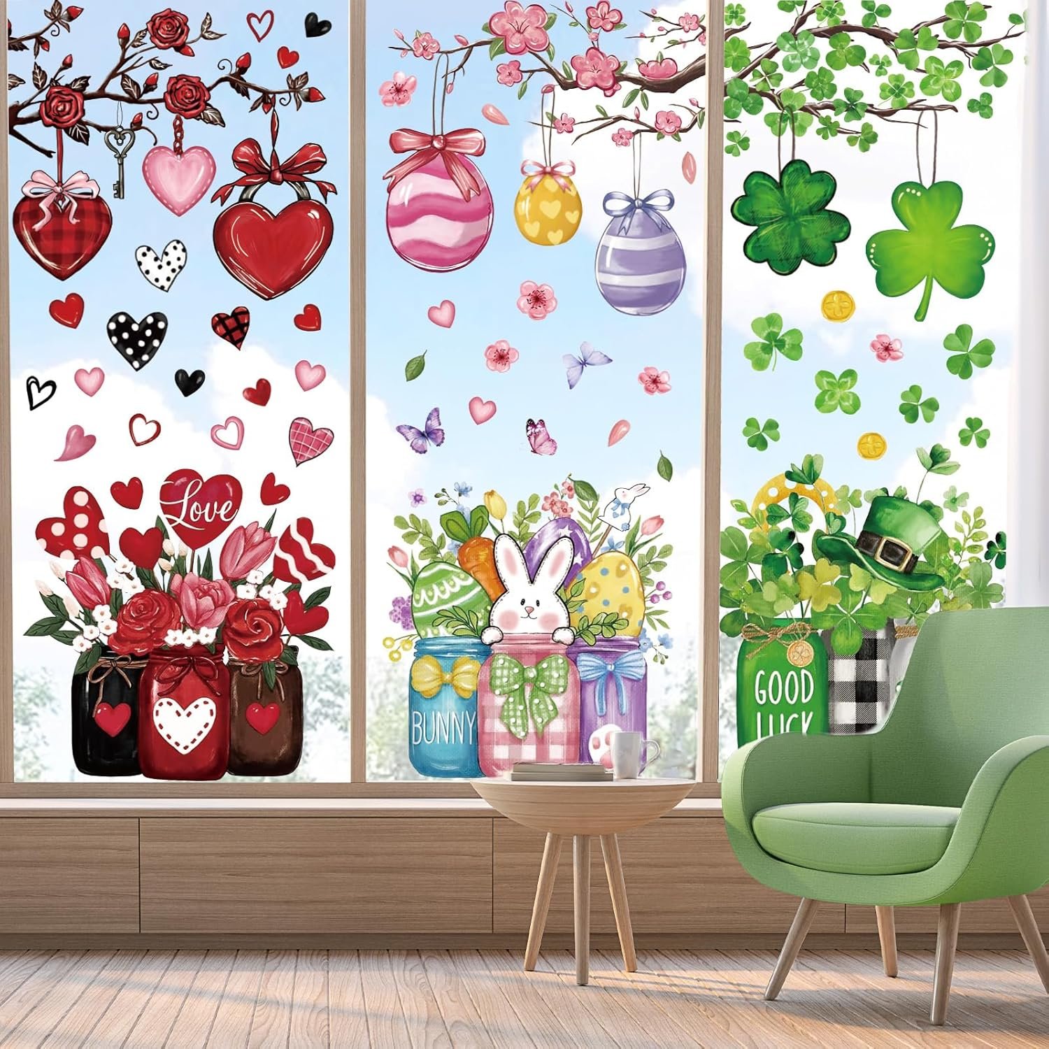 Valentine's Day Easter St. Patrick's Day Reusable Window DecalsValentine's Day Easter St. Patrick's Day Reusable Window Decals