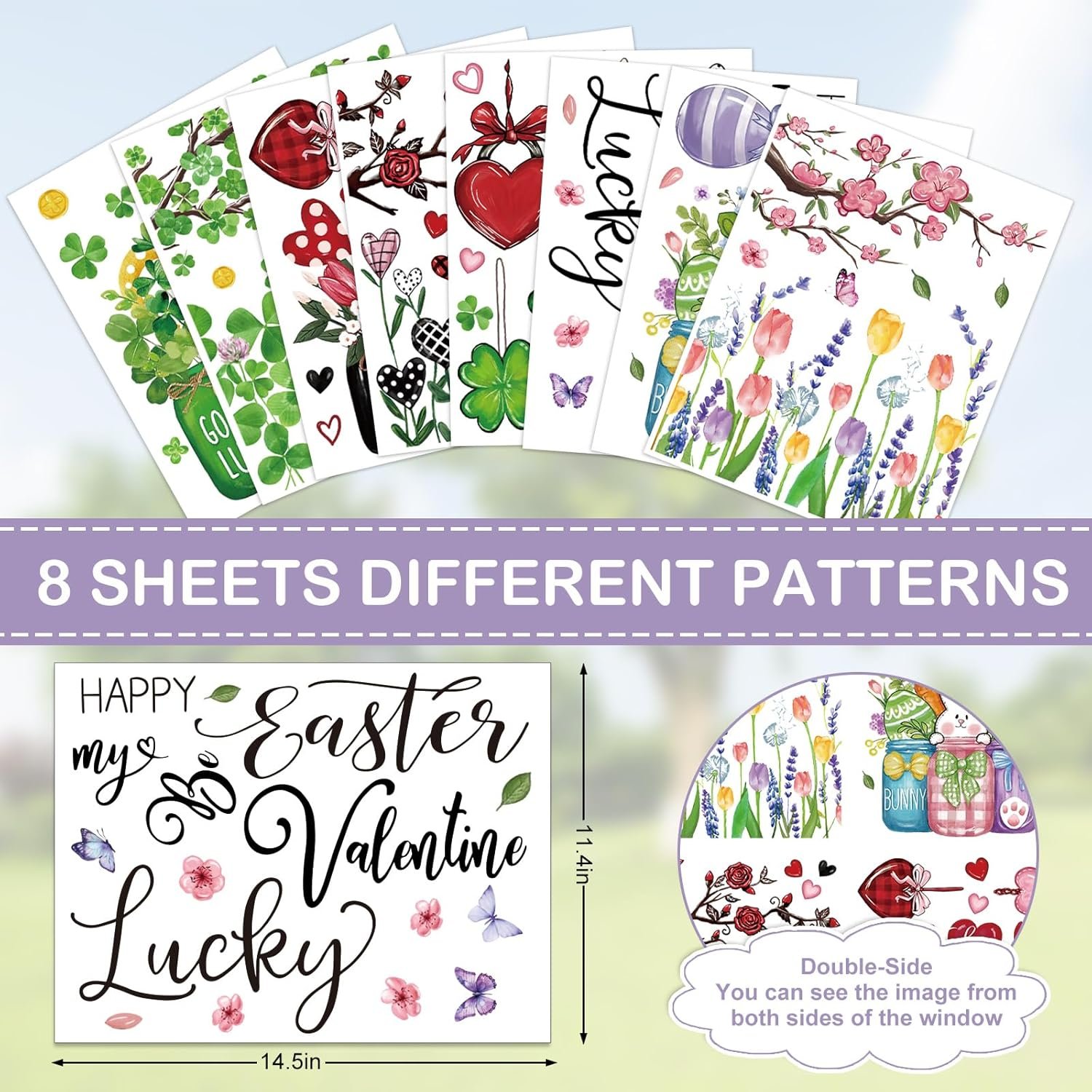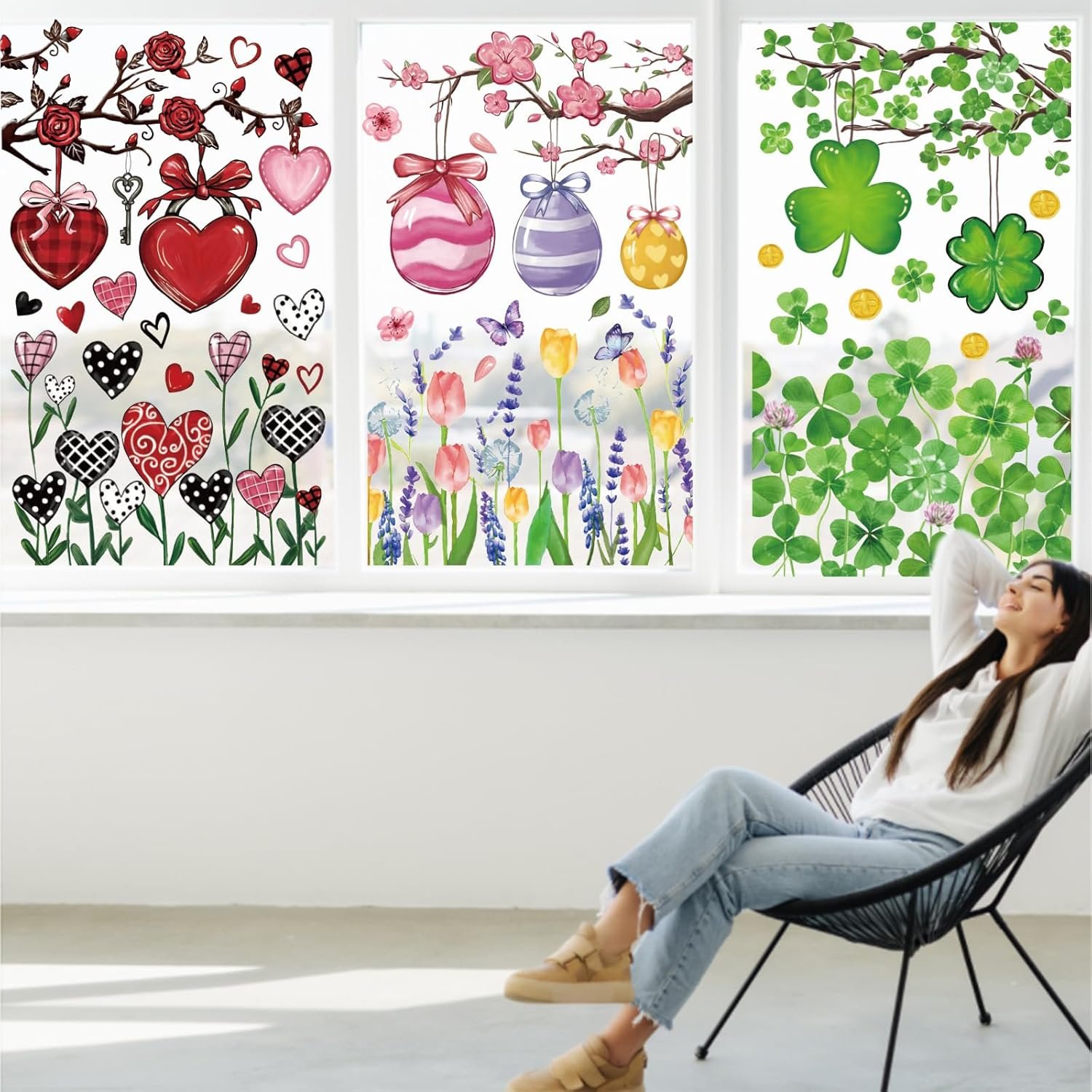 MULTI-THEME: Our window clings contain three themes: Valentine’s Day, Easter and St. Patrick’s Day, designed with festive holiday patterns and vibrant colors, classic and delicate, perfect to enrich the intensive holiday atmosphere