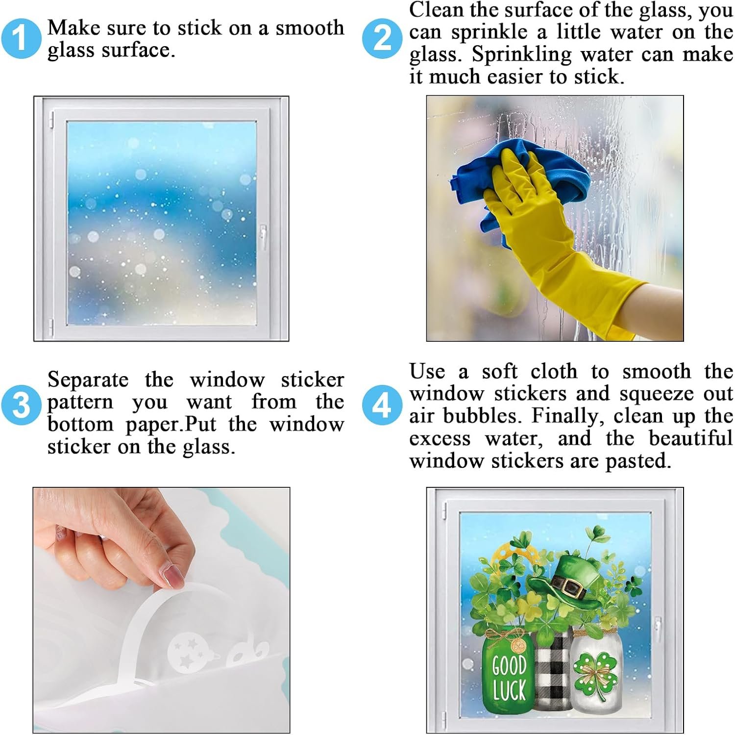 WIDE RANGE OF USE: Can be applied to most smooth surface, such as wooden furniture, floors, tiles, mirror, glass, window, showcase, store and restaurant window. You can also paste them to decorate Easter, St. Patrick’s Day, Valentine’s Day, spring party, holiday, wedding, birthday, etc