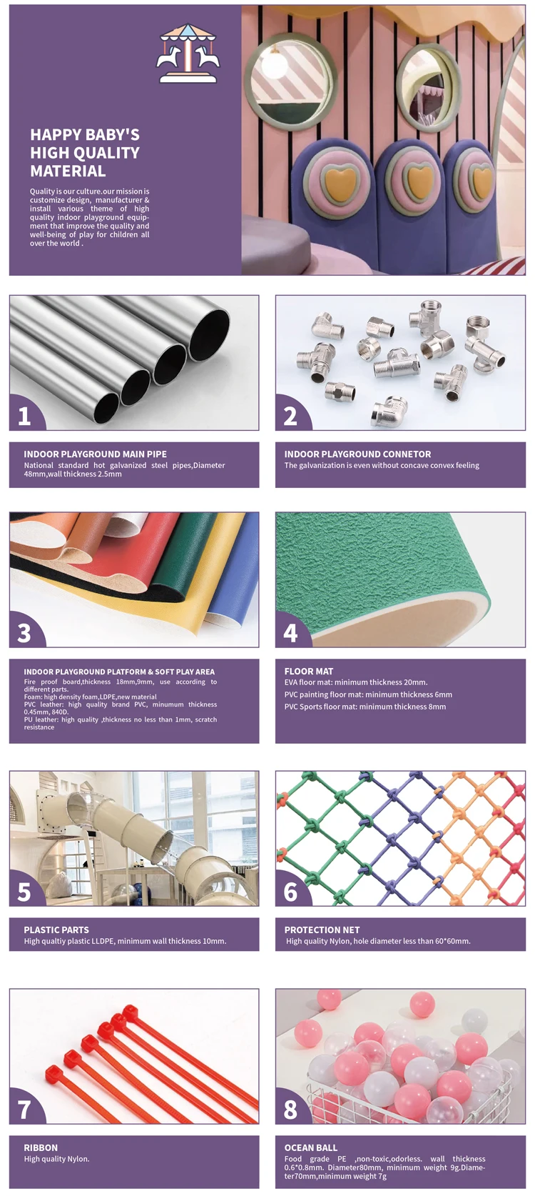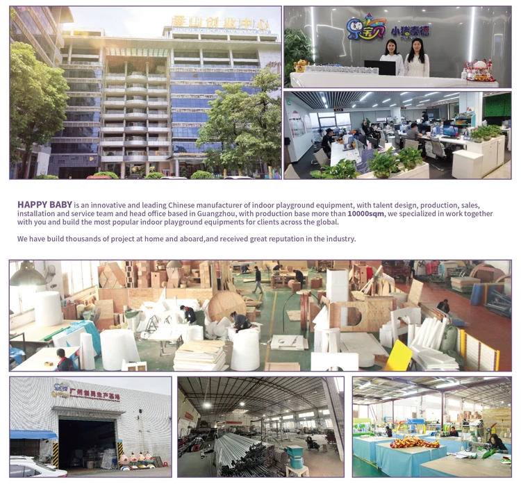 Happy Baby ,which specialized in Family Entertainment Center One- Stop Solution for over 17 years, our factory based in Guangzhou, covers an area of 10000M2, we specialized in designing, developing and manufacturing top quality, safe indoor playground for clients across the global. We support you in buliding and operating your playground business,from market reasearch,cost and profit projection,site selection,custom design. We have build thousands of project at home and aboard,and received great reputation in the industry. We can design the naughty castle as your requested.Any requirement,please feel free to contact us any time.Send Inquiry Now