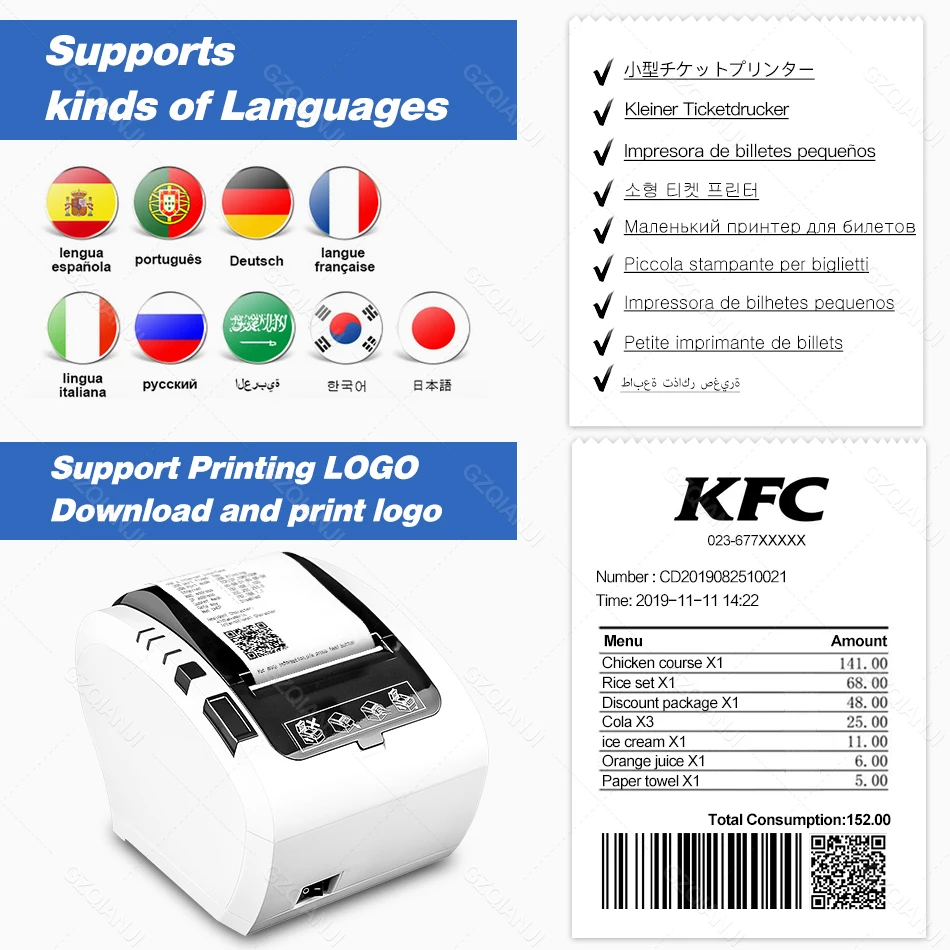 2) Driver: Windows XP /Vista/ Win7/Win8 /Win10/Win 2000/Win CE/OPOS/JPOS