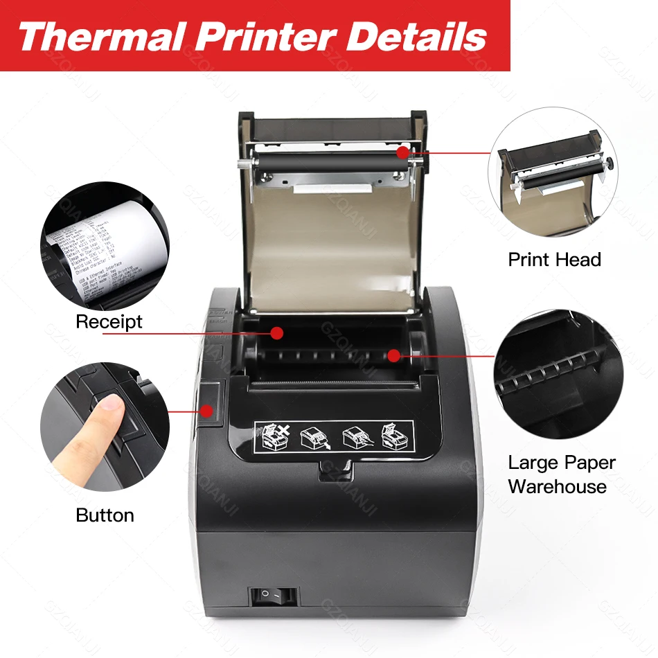 80mm Thermal Receipt Printer Work with Windows USB Ethernet Seri Wifi Bluetooth Port Bill Machine Maker Kitchen Pos Desktop Auto