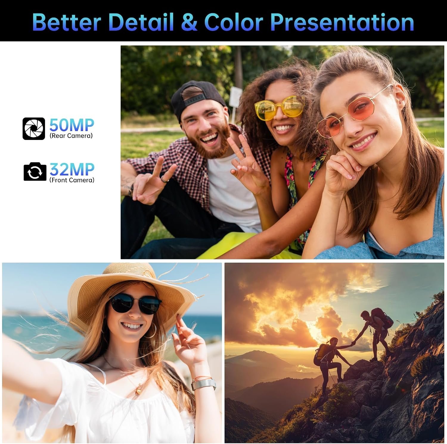 【Powerful Dual Camera】8849 Tank Pad gaming tablet 5g with a 50MP rear main camera, you can capture images with remarkable clarity and detail; the 32MP front-facing camera supports beauty selfies, which makes you can enjoy beauty at any time. It’s a best choice for online meeting, video calls, and outdoor photography