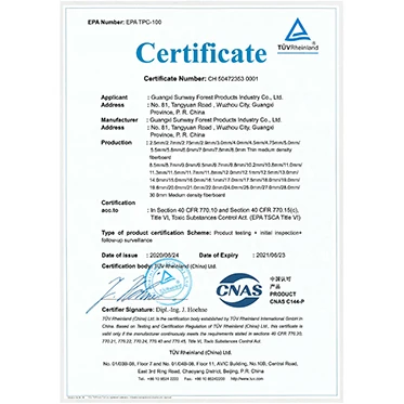 We usually request our MDF supplier submit us a certificate to demonstrate their materials are qualified to meet our standards.