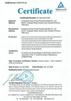 We only use quality MDF boards which have CARB Certificates. We usually need our supplier to submit the certificate before we make a purchase. For each batch, we always perform an inspection to make sure the quality meets our standard.
