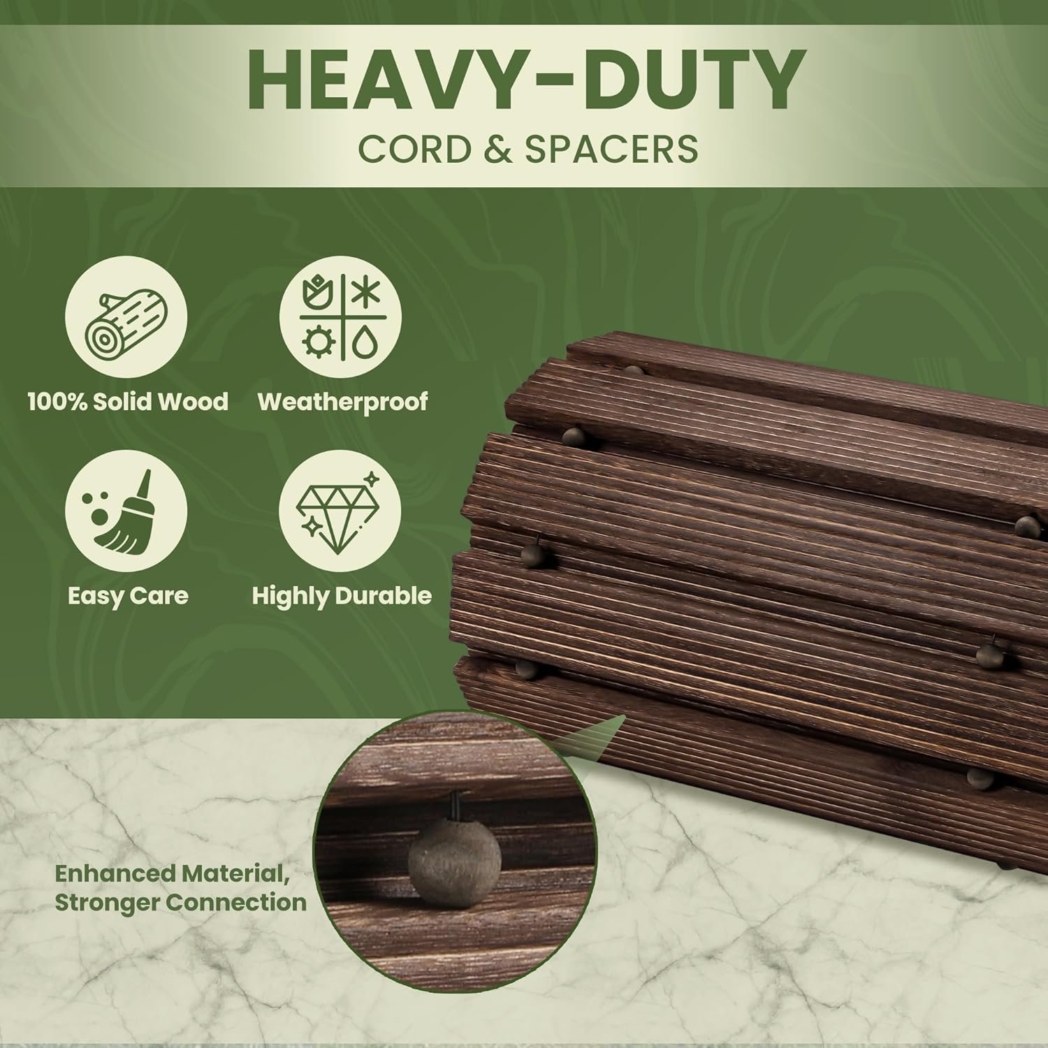【Durable Sycamore Planks for All Seasons】 Made from 100% natural Sycamore, pathway pavers for outside are denser and sturdier than others, resisting deformation, chipping, cracking and peeling. Weather-resistant and built to last, these pathway pavers handle extreme sun and moisture with ease. The 1.5cm thick slats feature anti-slip patterns for added stability and safety.