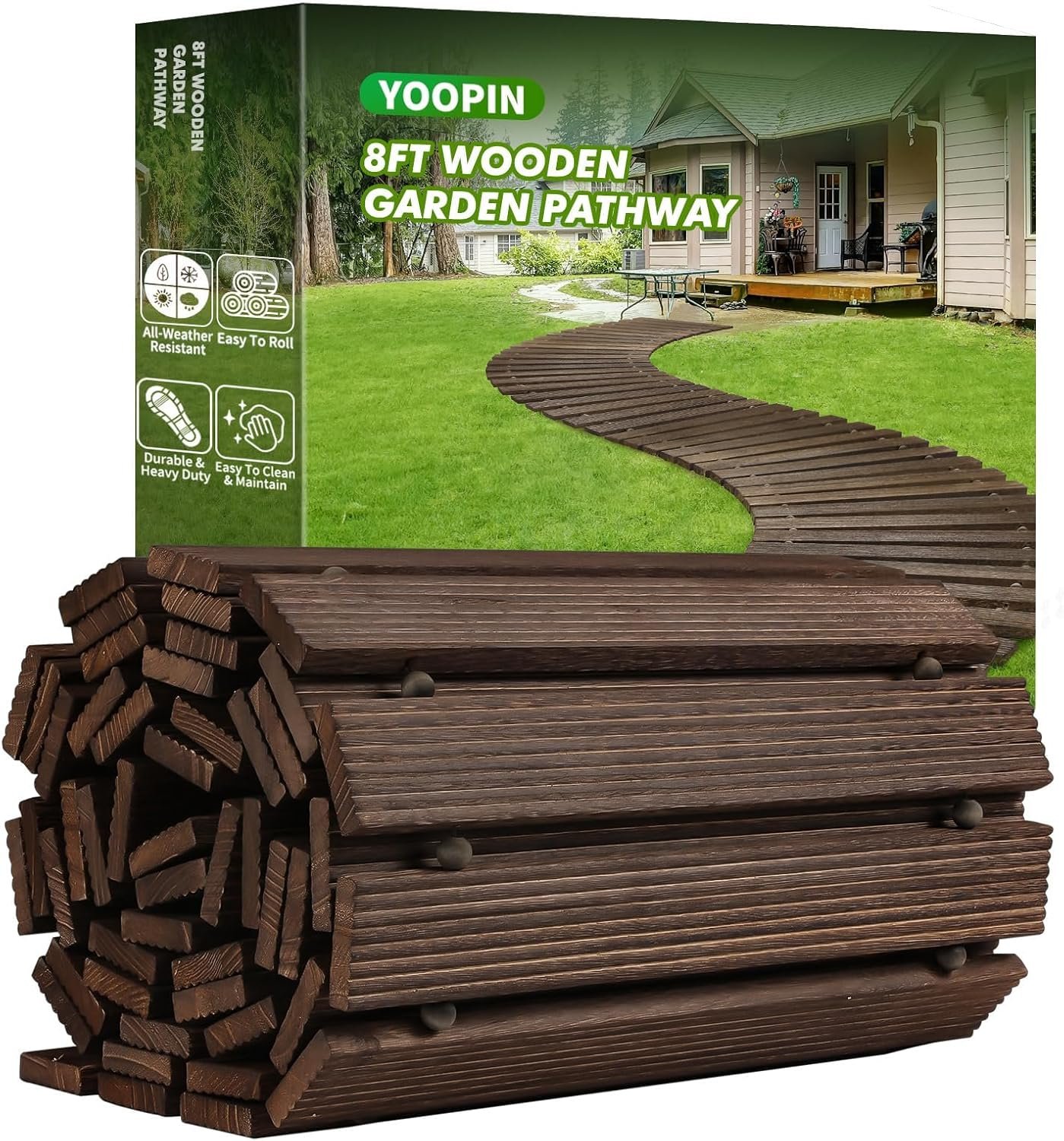 【Spacious Design for Maximum Coverage】 Garden walkway measures 8FT long and 17.5 inches wide, offering ample space to cover more ground instantly. This outdoor walkway is a convenient and cost-effective way to create the elegant hardwood deck you’ve always dreamed of. Design a multifunctional pathway or add rustic charm to your landscape with roll-out wooden garden pathway.