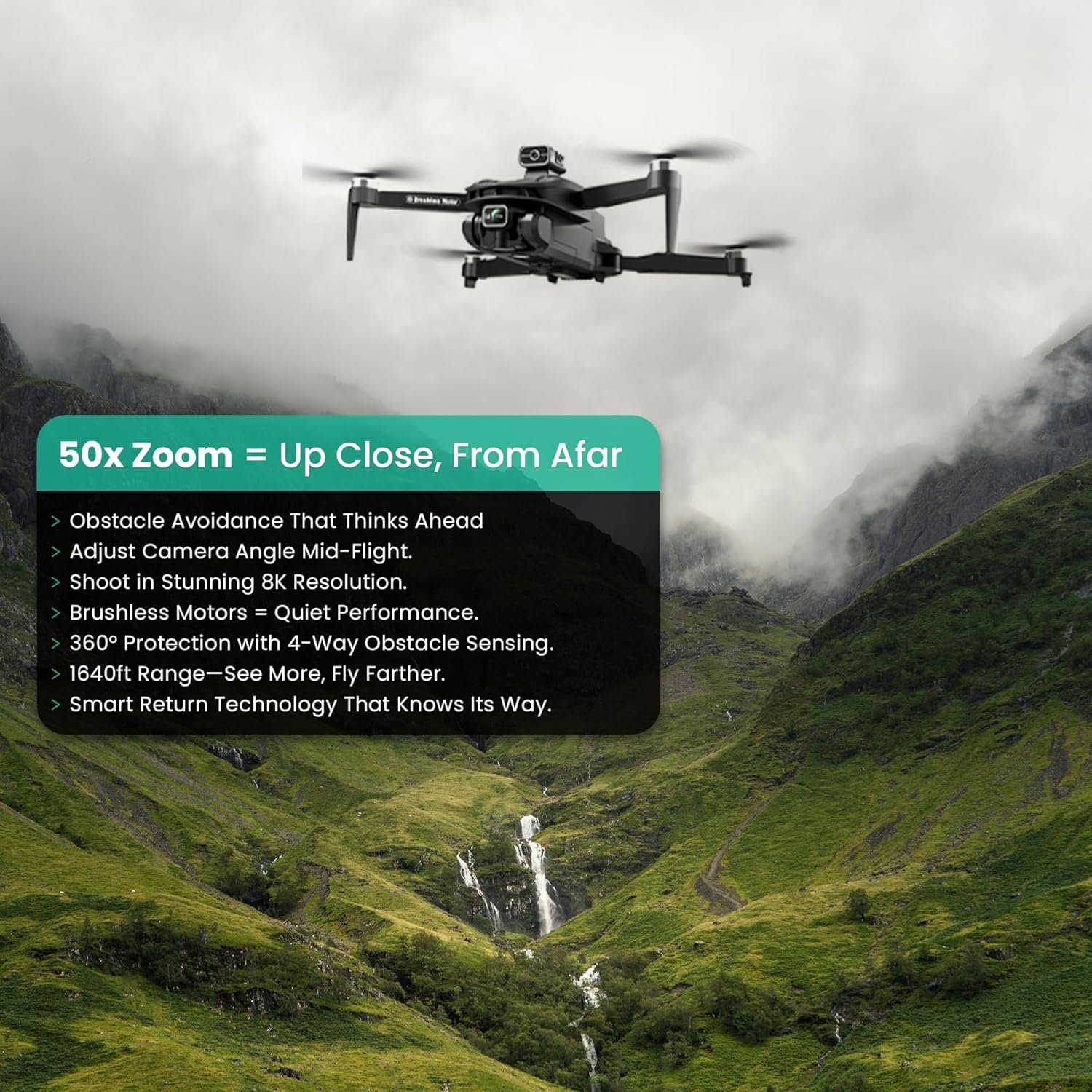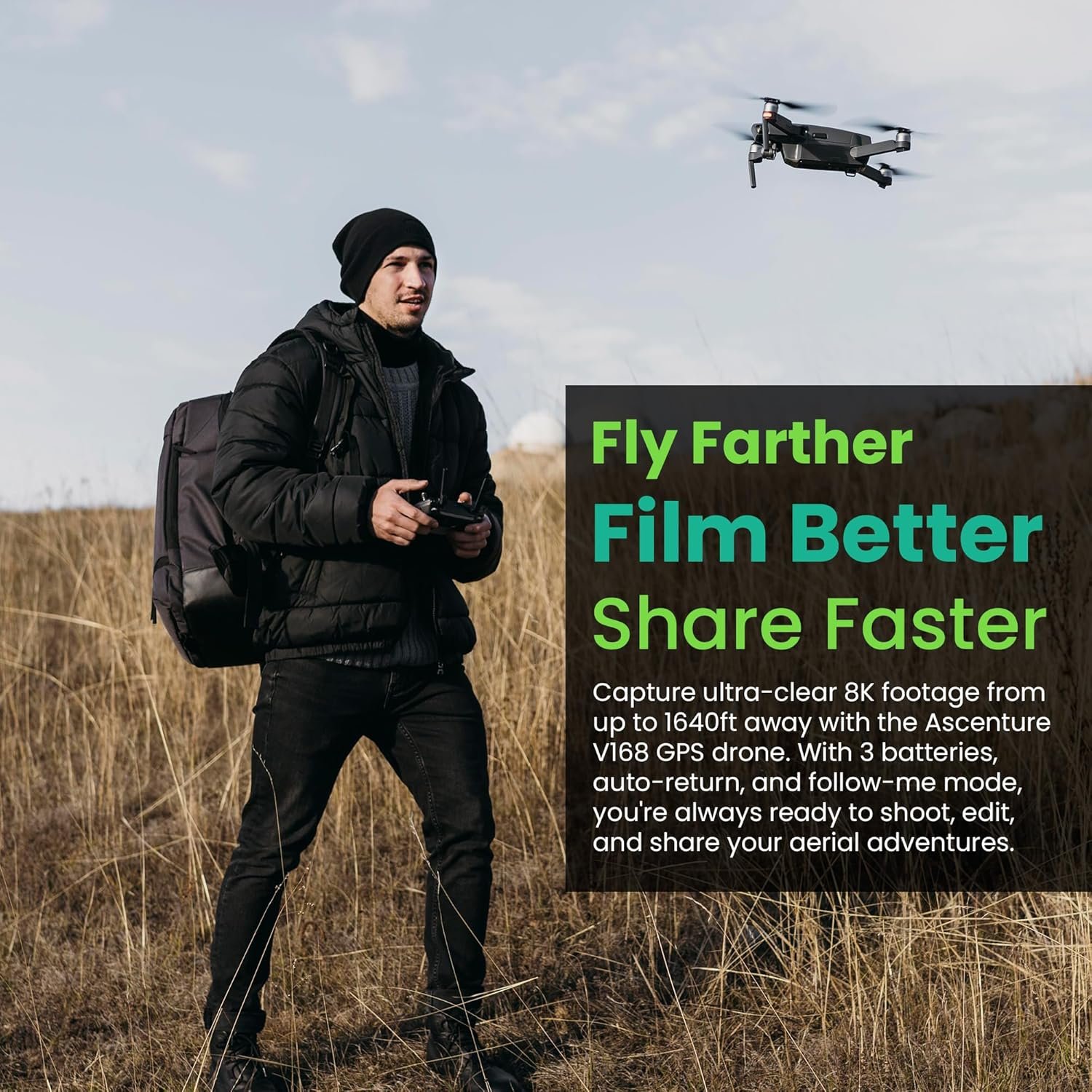 CAPTURE EPIC DETAIL with the Ascenture V168 GPS Drones for Adults and Beginners 14+! Zoom in with 50x magnification, enjoy gyroscope stability and take jaw-dropping 8K photo or video drone footage of your travels, special events, or breathtaking landscapes