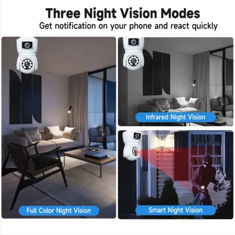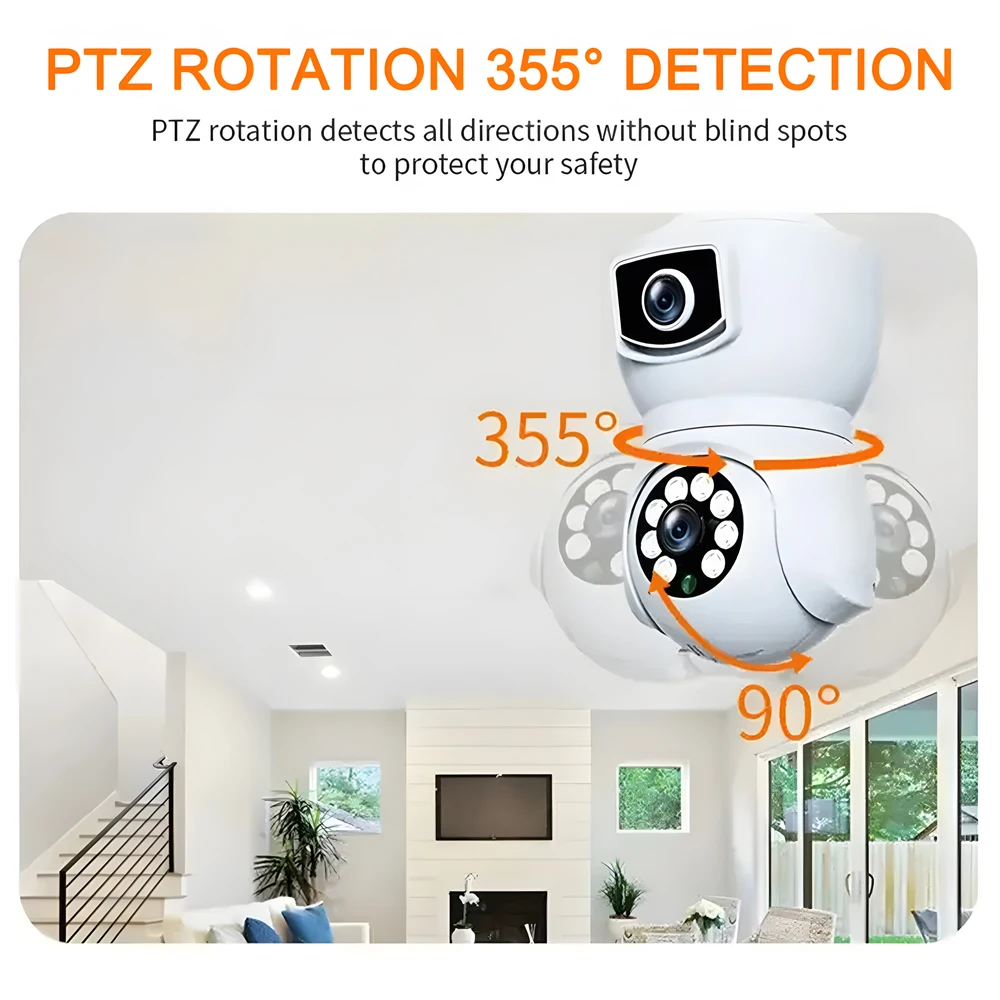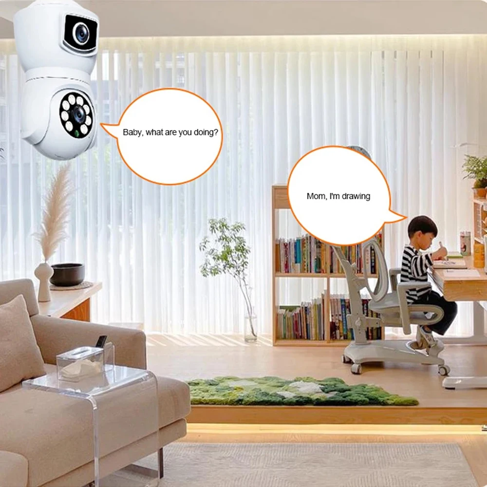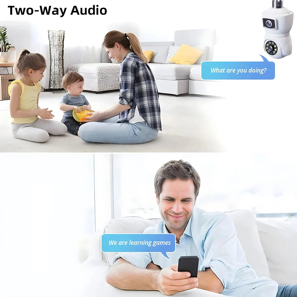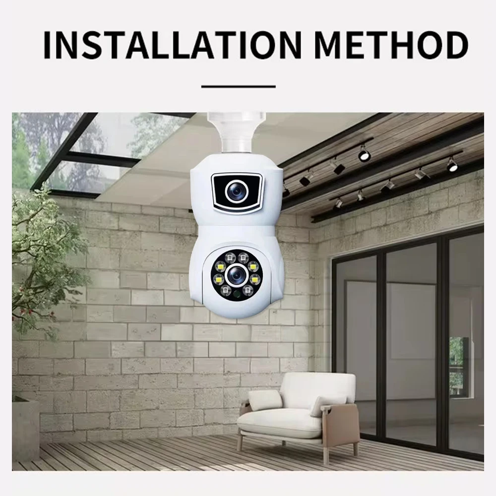 8MP E27 Bulb WiFi Camera Dual Lens Dual Screen Auto Tracking Two Way Audio Cam Color Night Vision Security Surveillance Camera