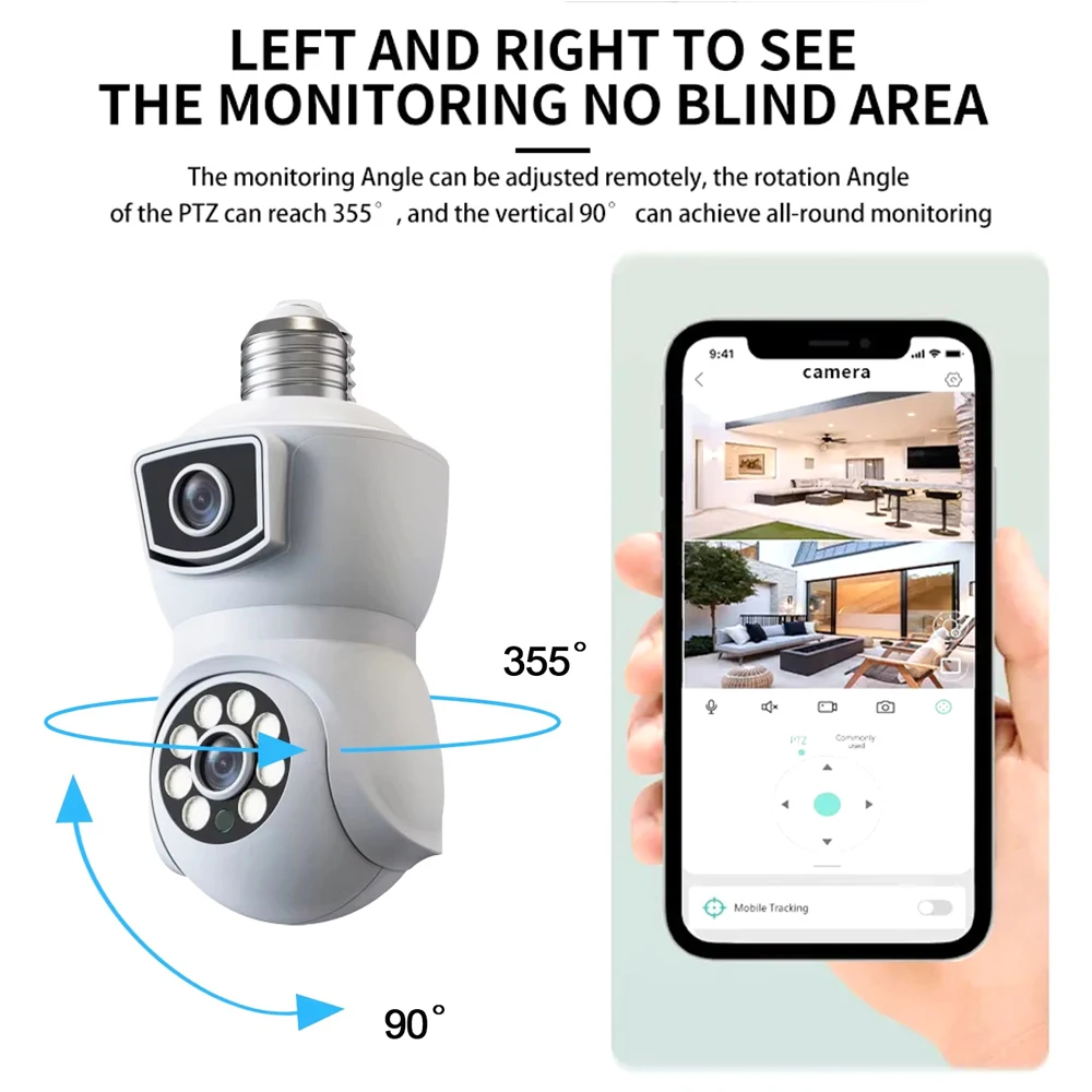 8MP E27 Bulb WiFi Camera Dual Lens Dual Screen Auto Tracking Two Way Audio Cam Color Night Vision Security Surveillance Camera