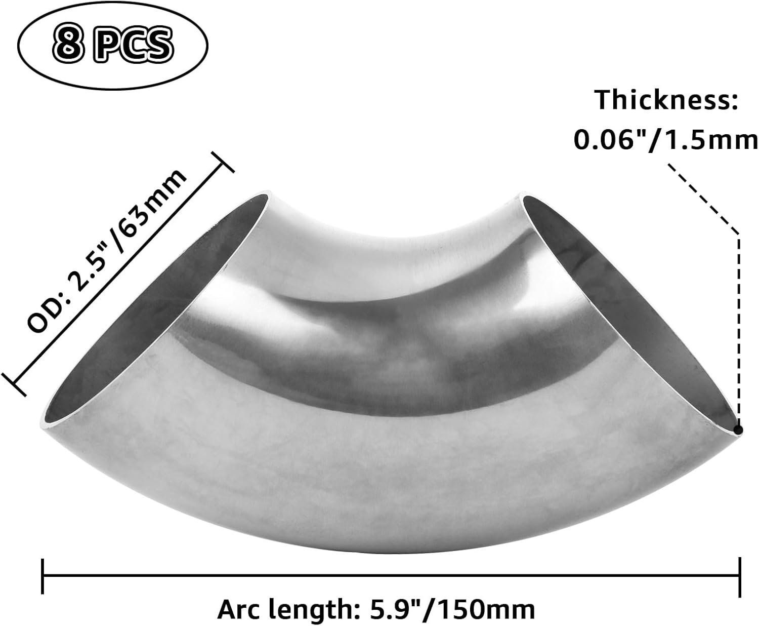 8PCS Stainless Steel Mandrel Bend Elbow, 90 Degree Exhaust Elbow Pipe, 2.5 Inch OD – Thickness 16GA/.065”for Car Modified Exhaust Elbow Pipe, Stair Handrail, Exhaust System