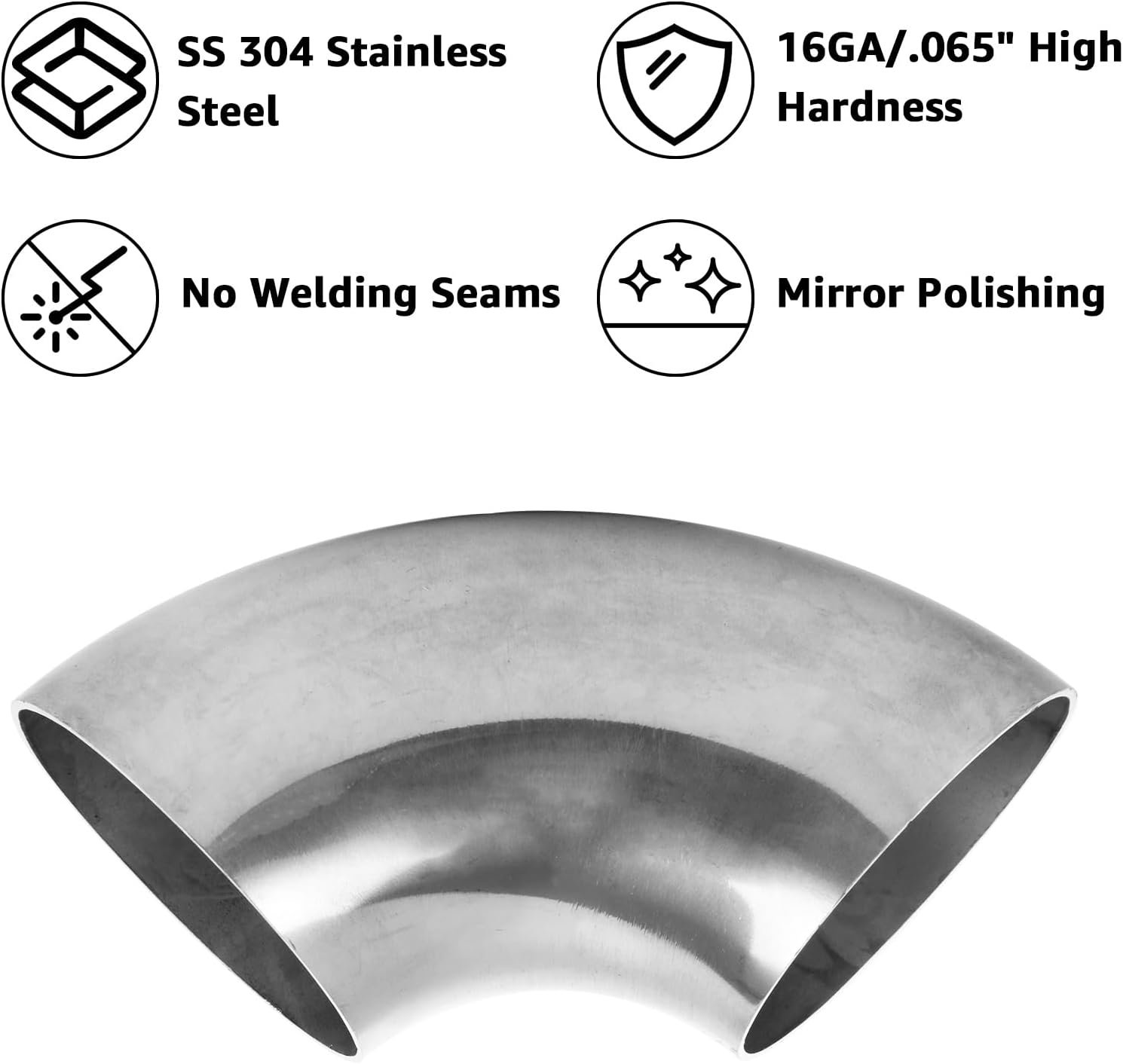 Sturdy & Durable – Our 2.5”elbow exhaust pipe made of premium SS 304 stainless steel, this mandrel bend elbow has smooth edge and mirror polishing; Not easily damage, anti-rust, anti-oxidation for long time use