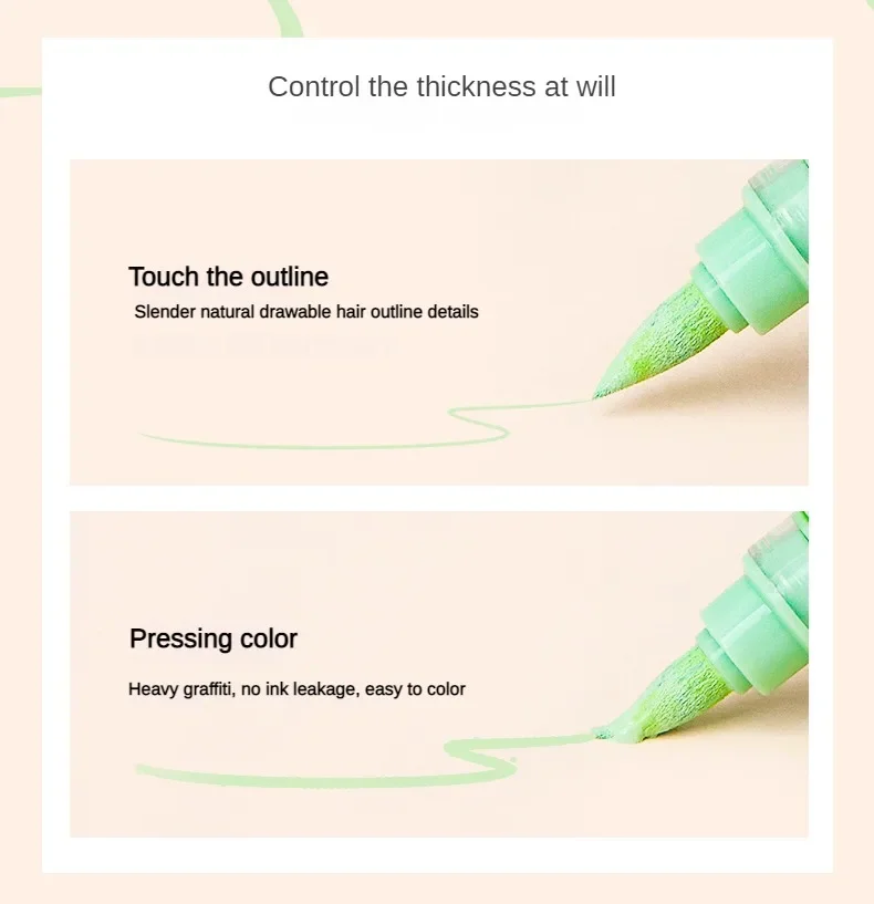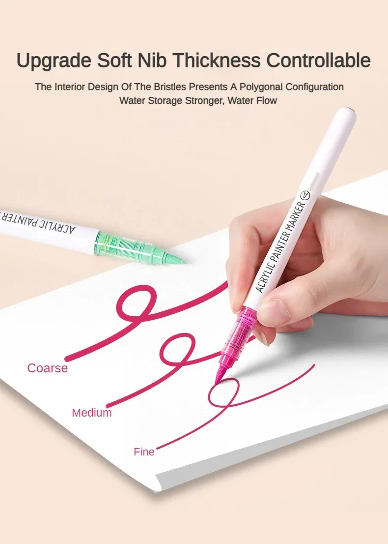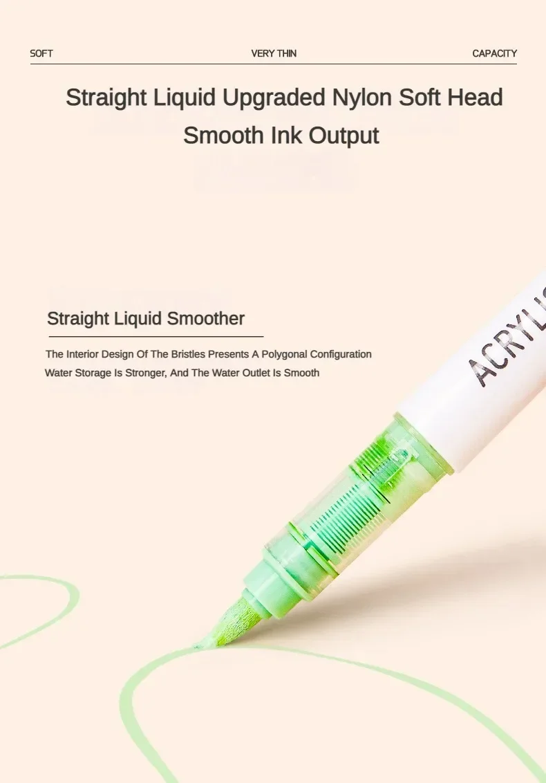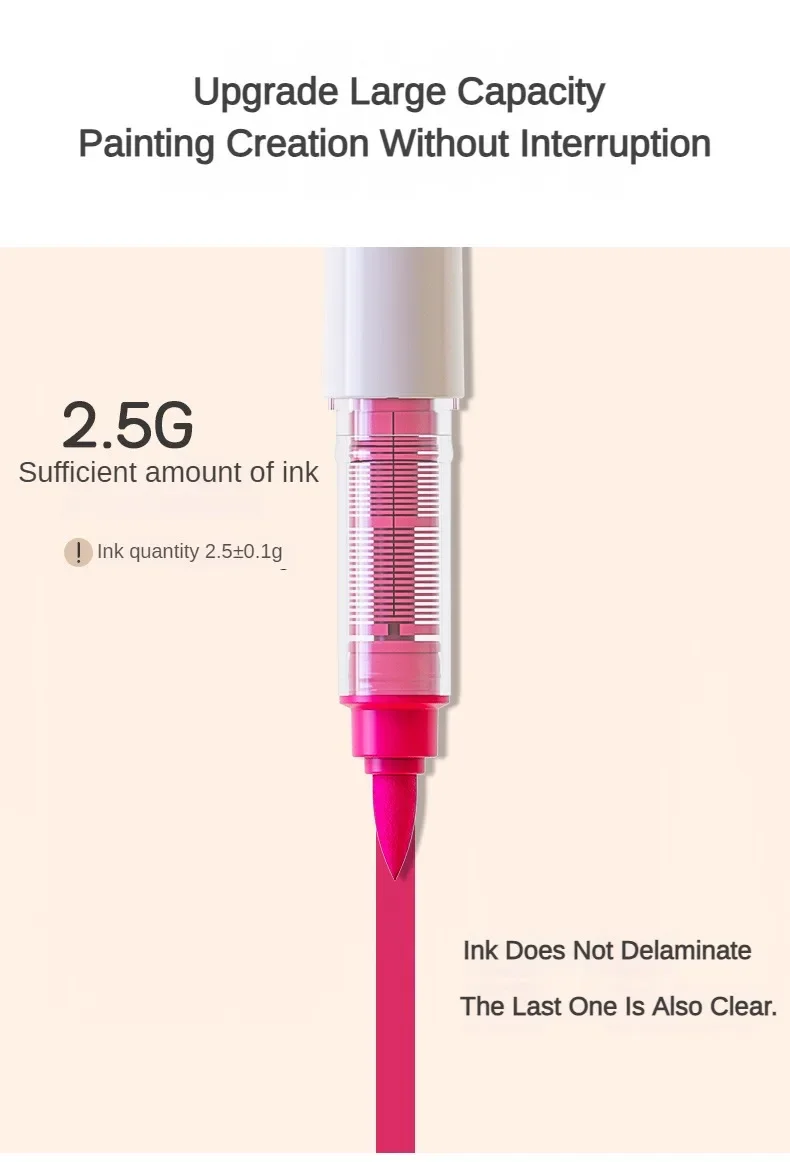 The innovative liquid-feed system ensures a silky-smooth experience, while the ultra-soft nibs offer precise control, allowing for seamless transitions from delicate strokes to bold swathes of color. The rotating ball design on the cap adds a playful touch, inspiring creativity with every spin.
