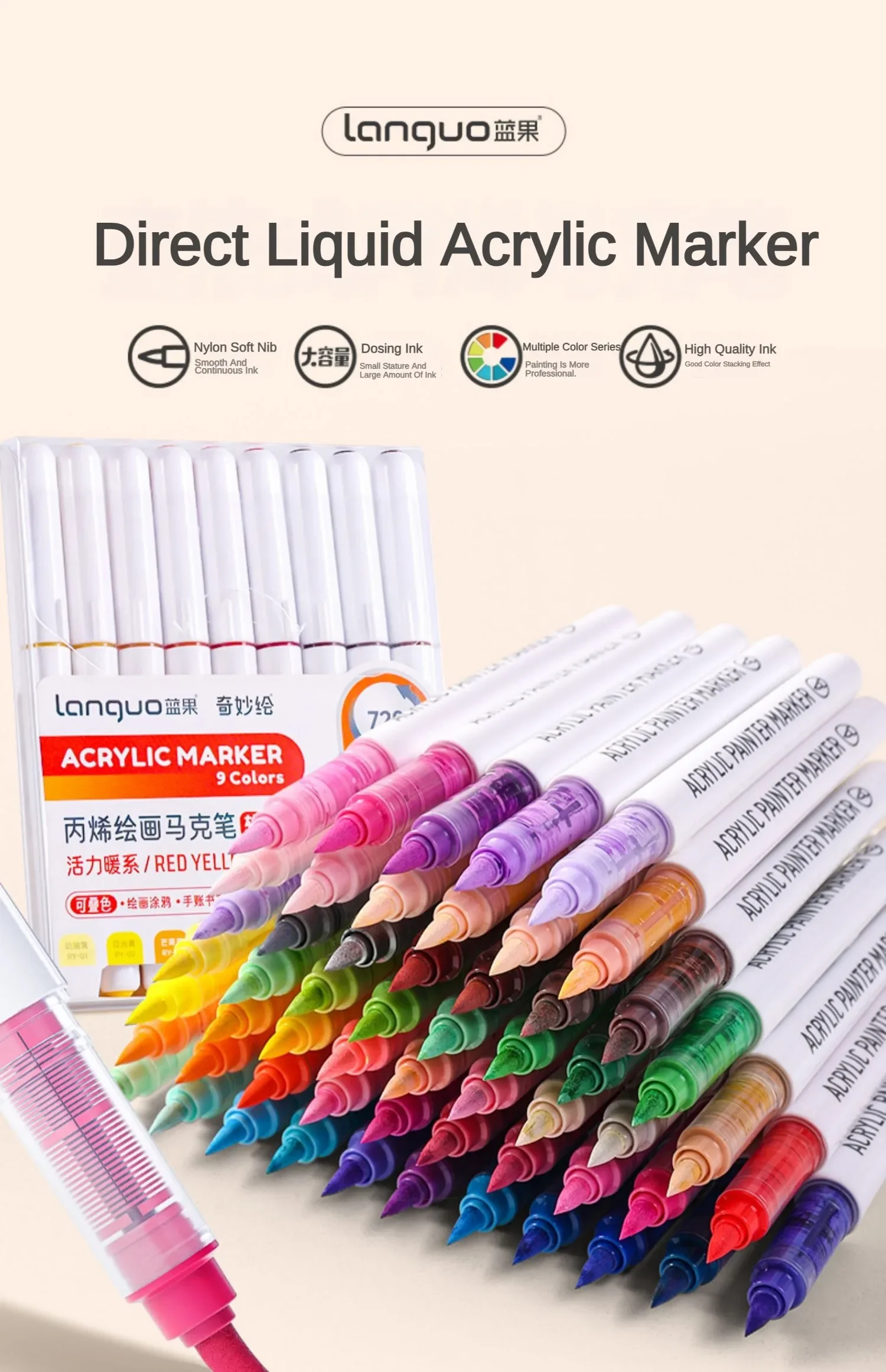 126/9 Colors Direct Liquid Acrylic Paint Marker Pen Set DIY Painting Drawing for Stone Shoe Glass School Art Supplies Stationary