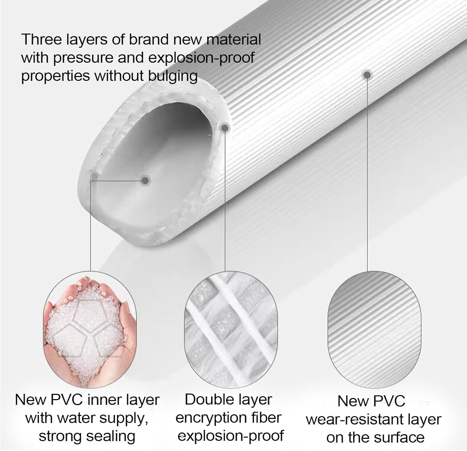 Condition: 100% brand new Material: PVC Color: White Length: 2m/6.56ft, 3m/9.84ft Hose outer diameter: approx. 17mm/0.669in Suitable inlet valve thread diameter: approx. 25mm/0.98in Package weight: approx. 422~570g Package includes: Includes washing machine hoses 6Ft 1PCS + 3/4″ NPT male and female connector 1PCS + faucet adapter for portable washer 1PCS + Water Tape 1PCS