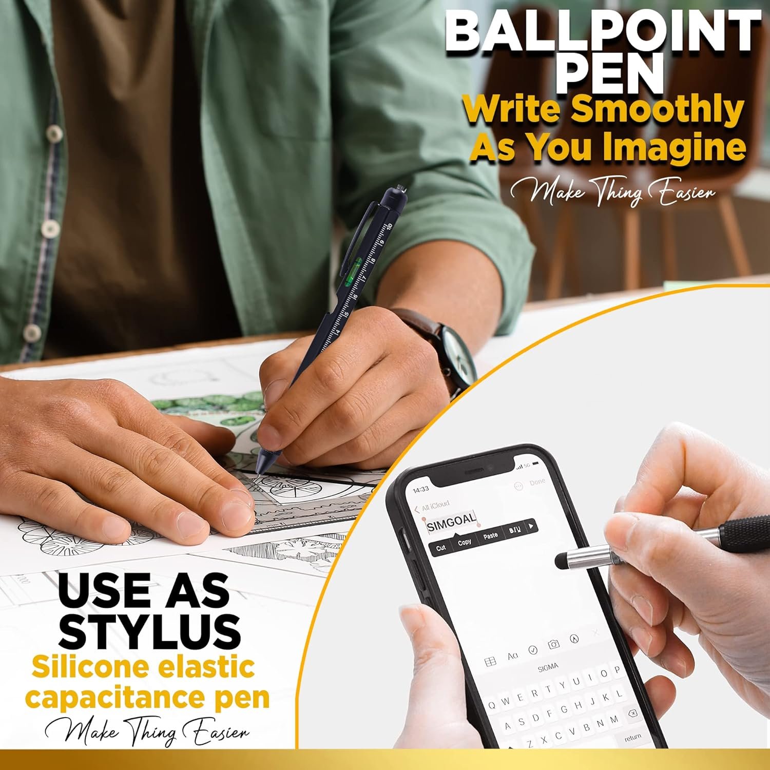 MULTI – FUNCTIONAL TOOL : This Multi tools for men pen set is combined with 9 handy features: twist ballpoint pen/ LED light/ stylus/ bubble leveler/ screwdriver flat & phillips / bottle opener – useful phone holder/ and a standard ruler in just one tactical set making it the prefect Men christmas stocking stuffers for adults, gift for him!