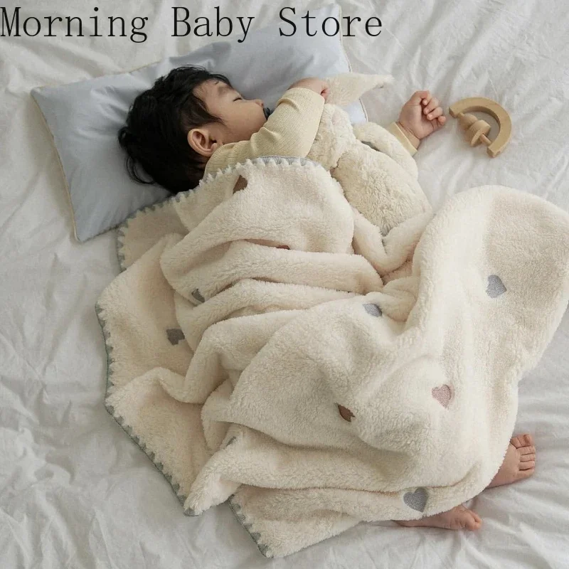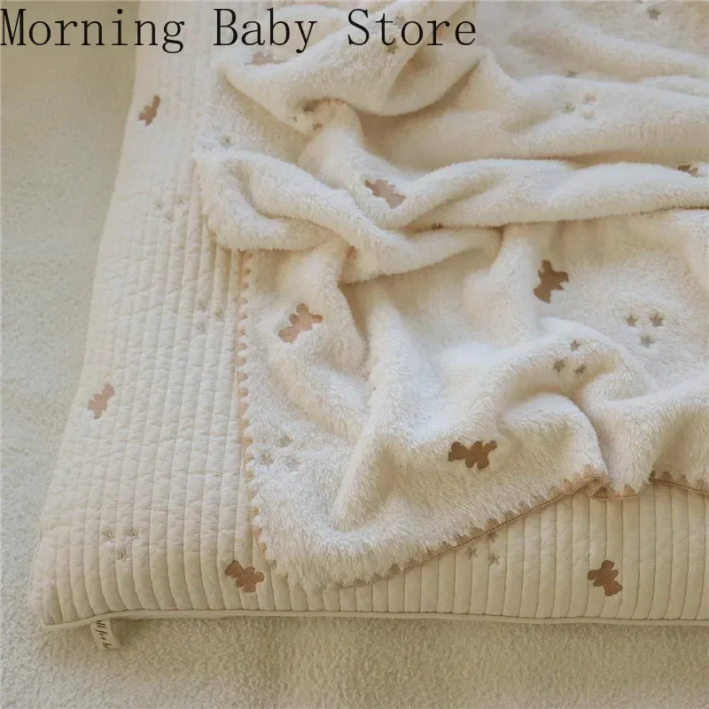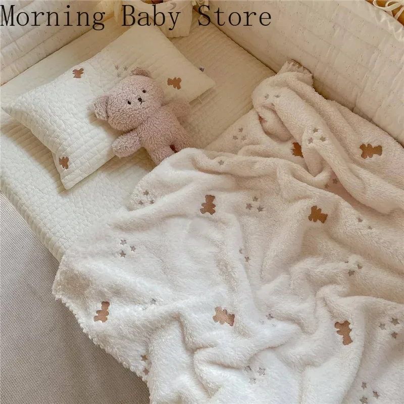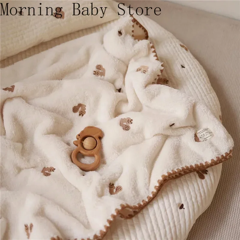 90*130cm Baby Embroidery Blanket Spring Autumn Winter Soft Warm Flannel Newborn Baby Quilt for Bed Crib Stroller Accessories