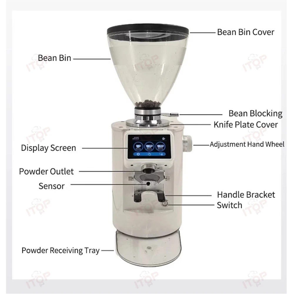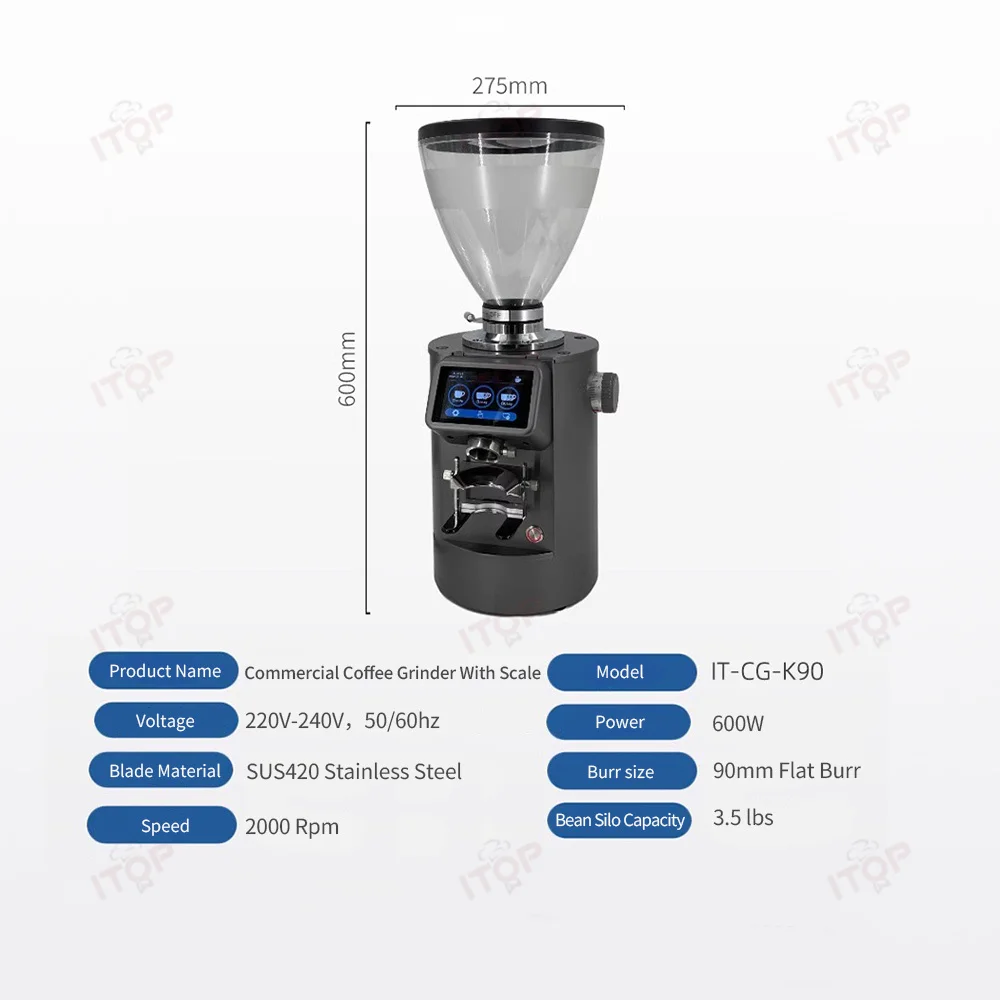 90mm Espresso Coffee Grinder Built-in Weighing Function or Time Quantitative Grind Titanium Flat Burr Coffee Mill Professional