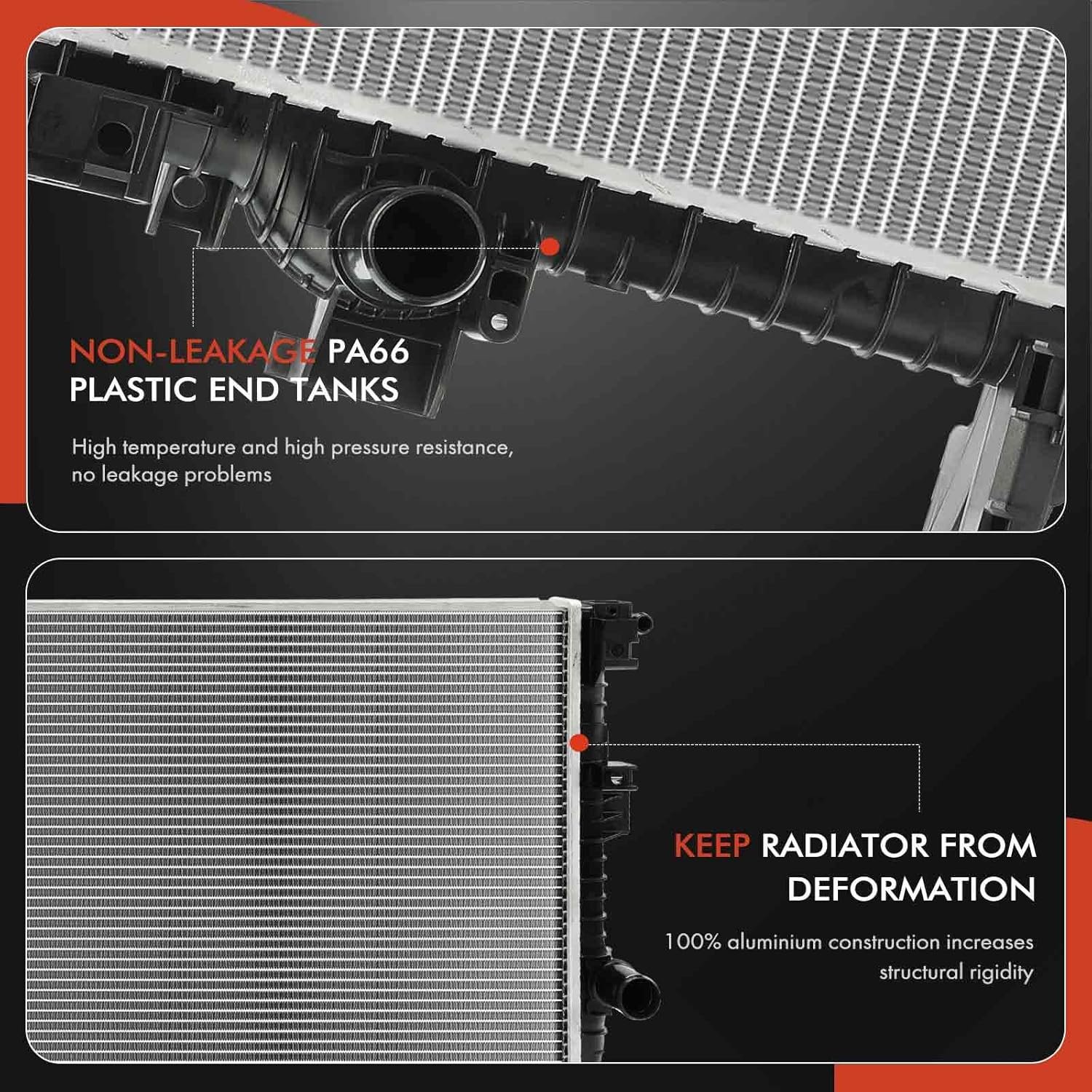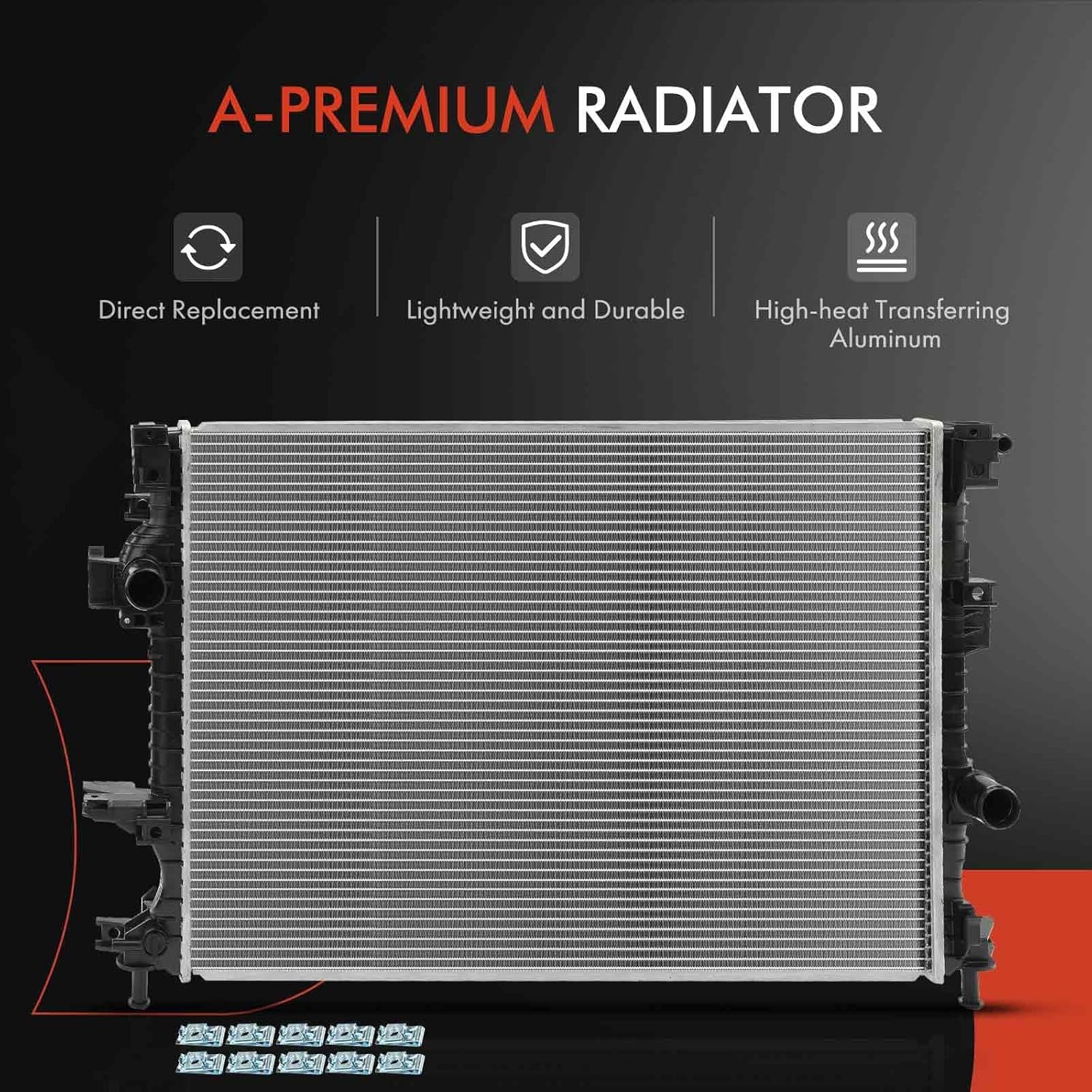 [Advantage]: A-Premium Radiator is manufactured and tested to the strictest standards for superior performance to restore the vehicle’s cooling system performance to optimum operating condition.