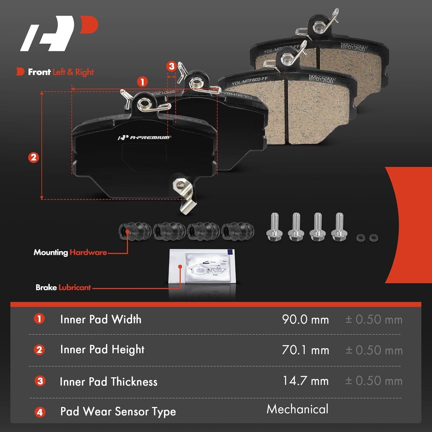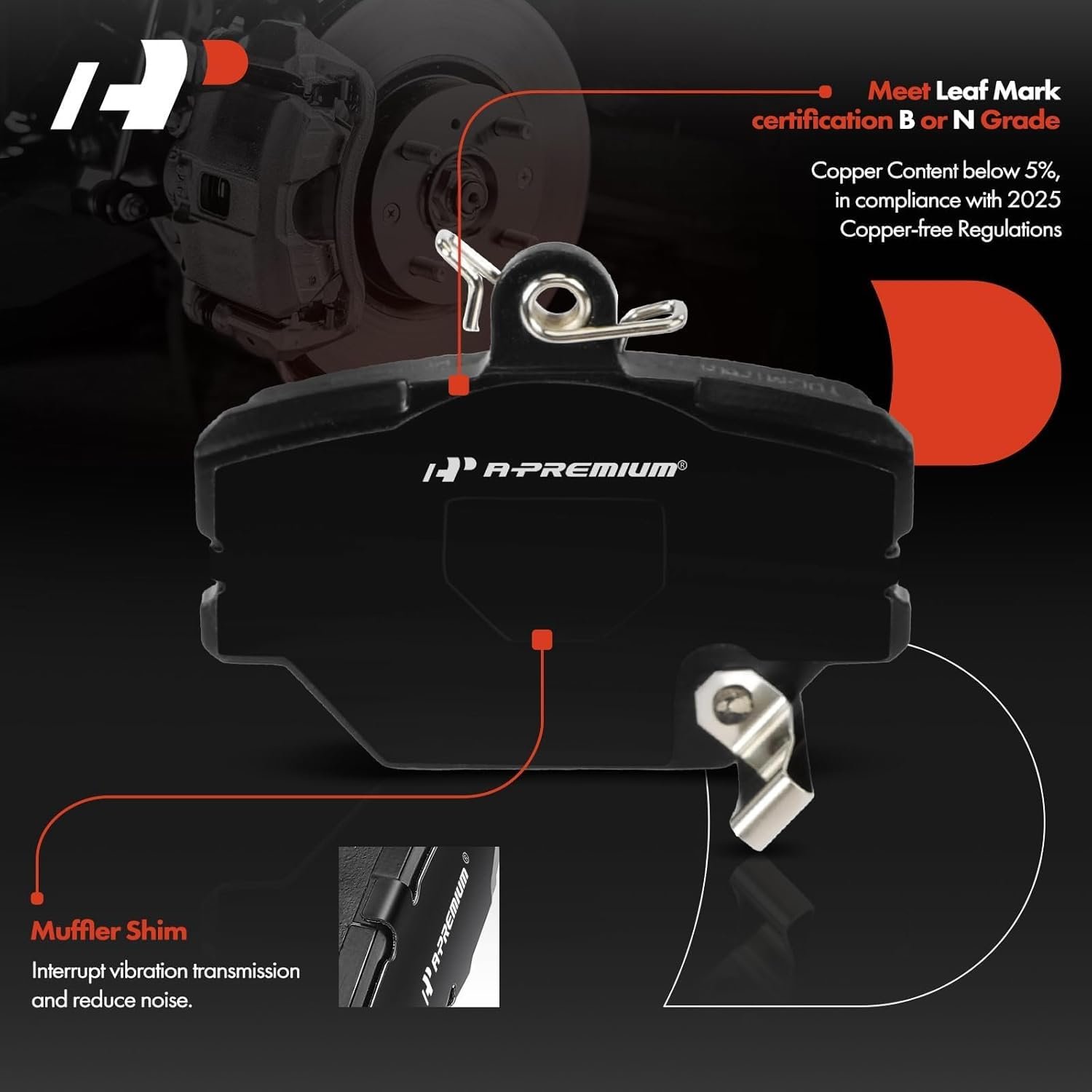 A-Premium Front Ceramic Disc Brake Pads Set Compatible with Smart Fortwo 2005-2015, 4 Pcs