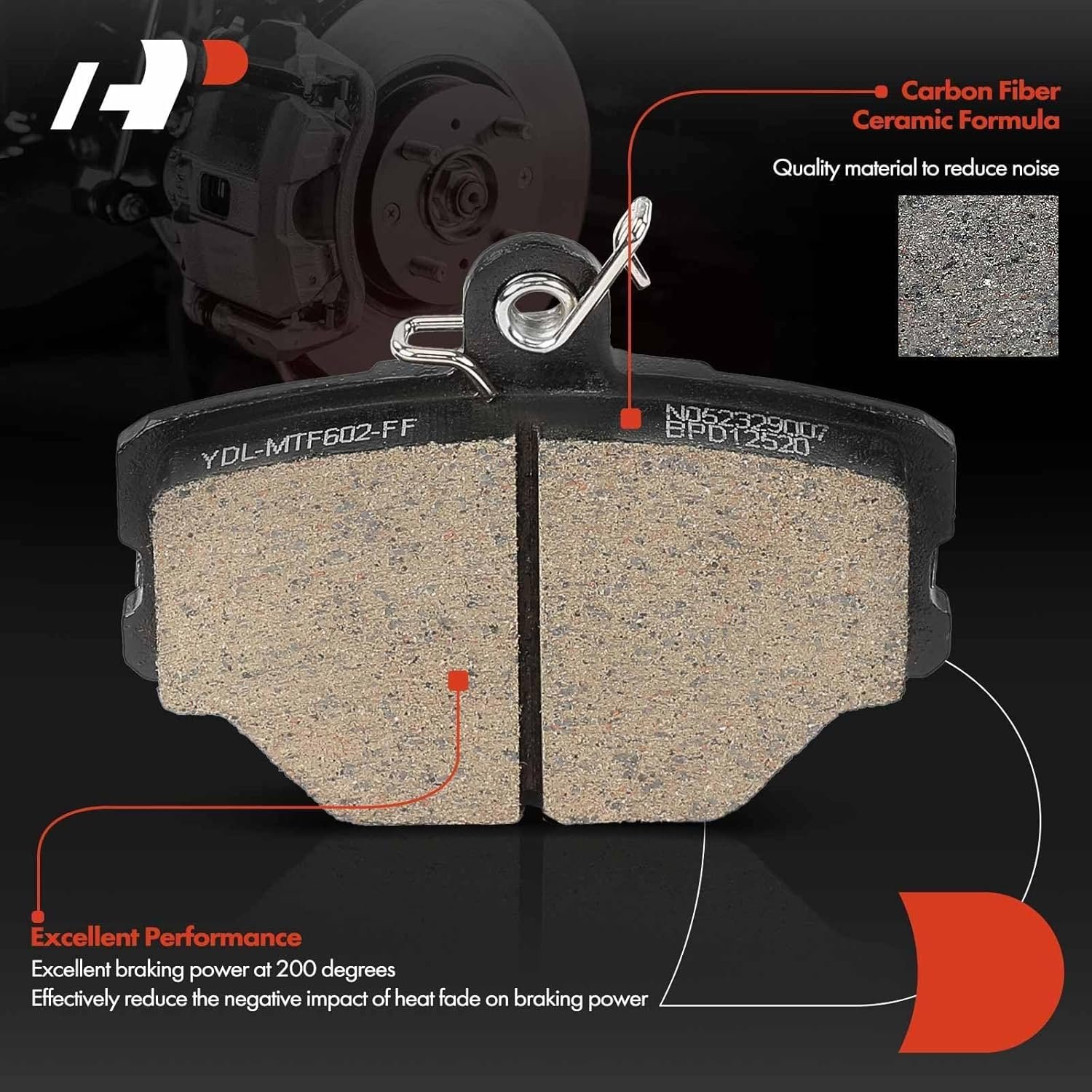 [Directly Fit]: OE Replacement Ceramic Disc Brake Pads Kit, including Mounting Hardware and Brake Lubricant (High-temperature Grease). Please enter your vehicle information in the top left corner of listing and check our “Special Note” before ordering