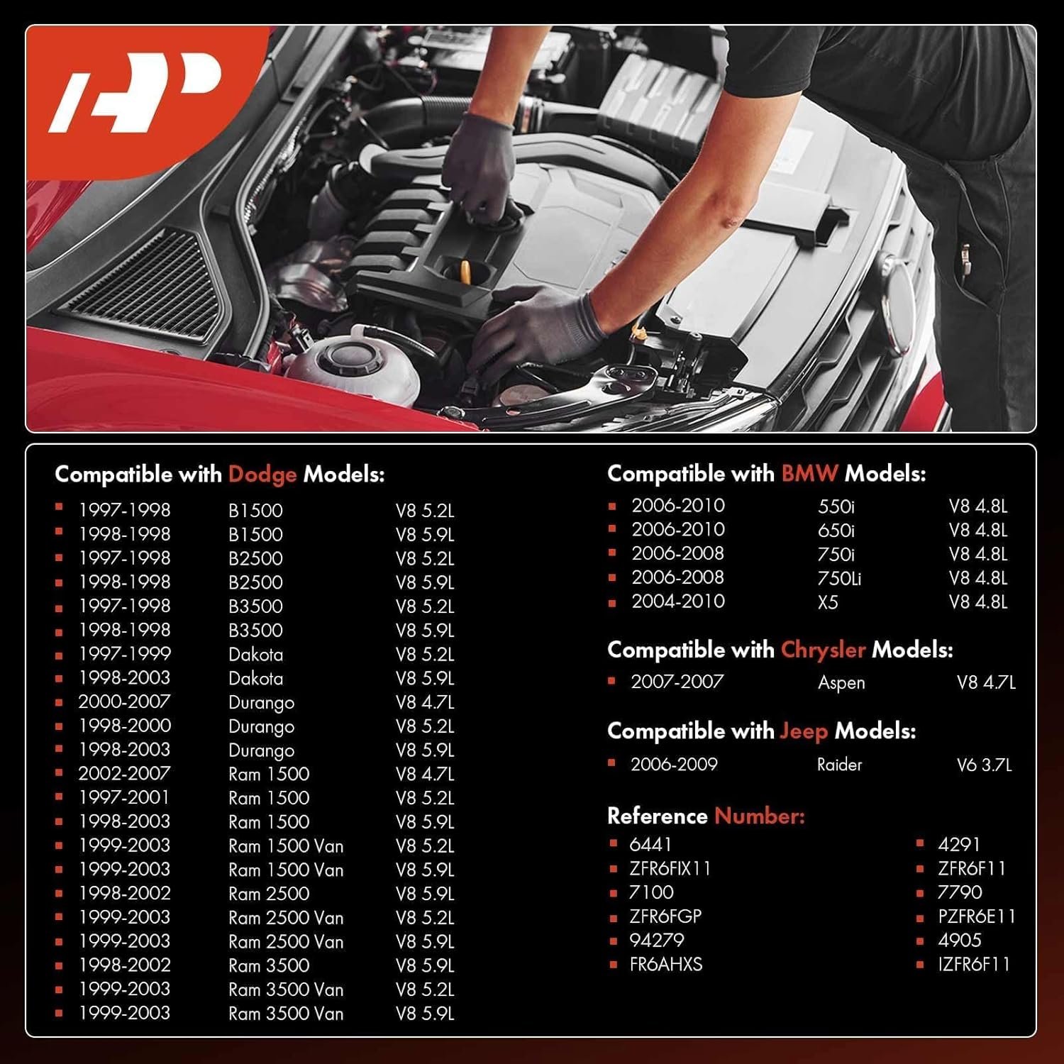 [Vehicle Fitment-1]: Compatible with BMW 550i 2006-2010, 650i 2006-2010, 750i 2006-2008, 750Li 2006-2008, X5 2004-2010; Compatible with Chrysler Aspen 2007; Compatible with Dodge B1500 1997-1998, B2500 1997-1998, B3500 1997-1998, Dakota 1997-2003, Durango 1998-2007, Ram 1500 1997-2007, Ram 1500 Van 1999-2003, Ram 2500 1998-2002, Ram 2500 Van 1999-2003, Ram 3500 1998-2002, Ram 3500 Van 1999-2003