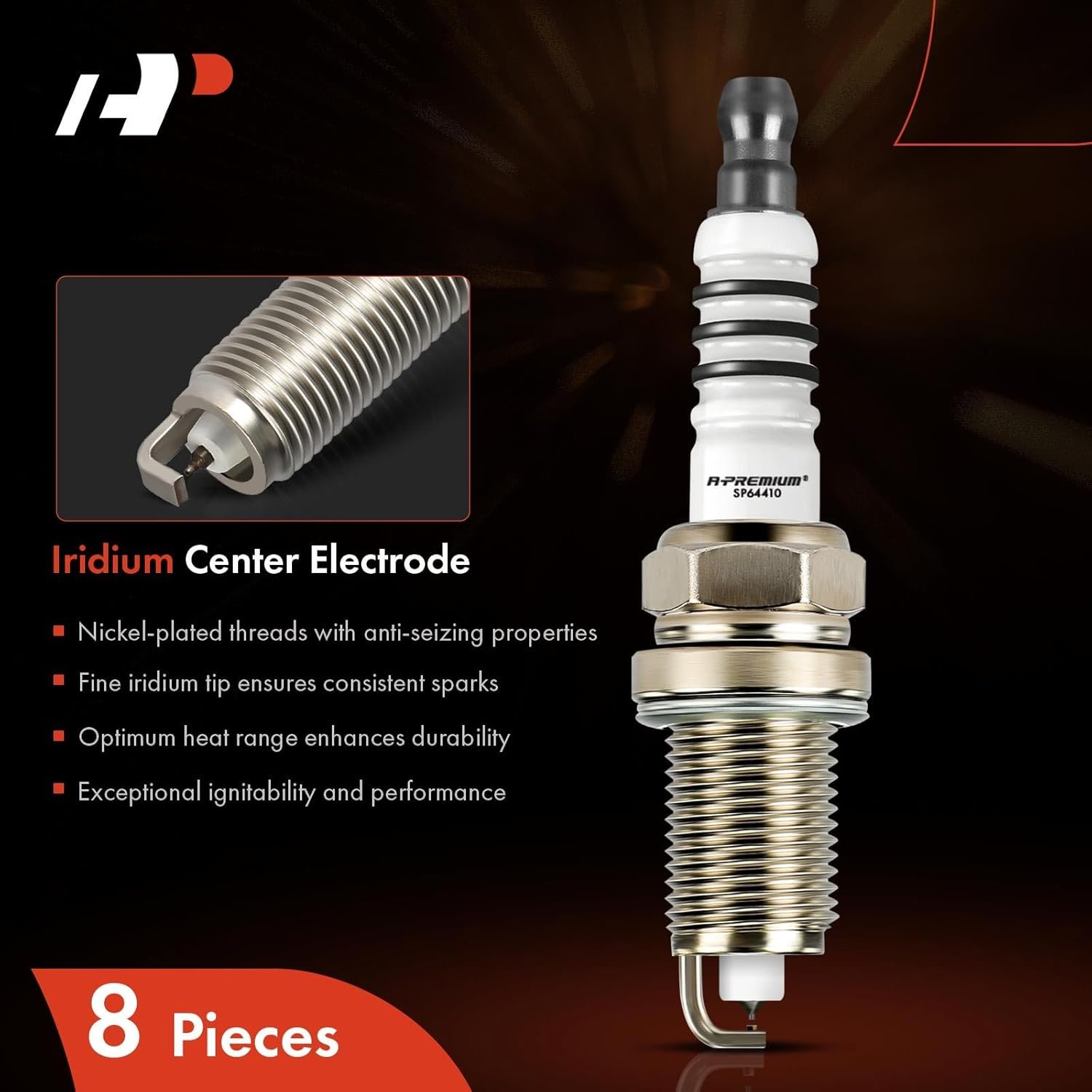 A-Premium Iridium Platinum Spark Plugs (Pack of 8) Compatible with Jeep Grand Cherokee, Commander & Dodge Ram 1500 2500 3500, Durango, Dakota, B1500, B2500, B3500 & BMW X5, 550i, 750i