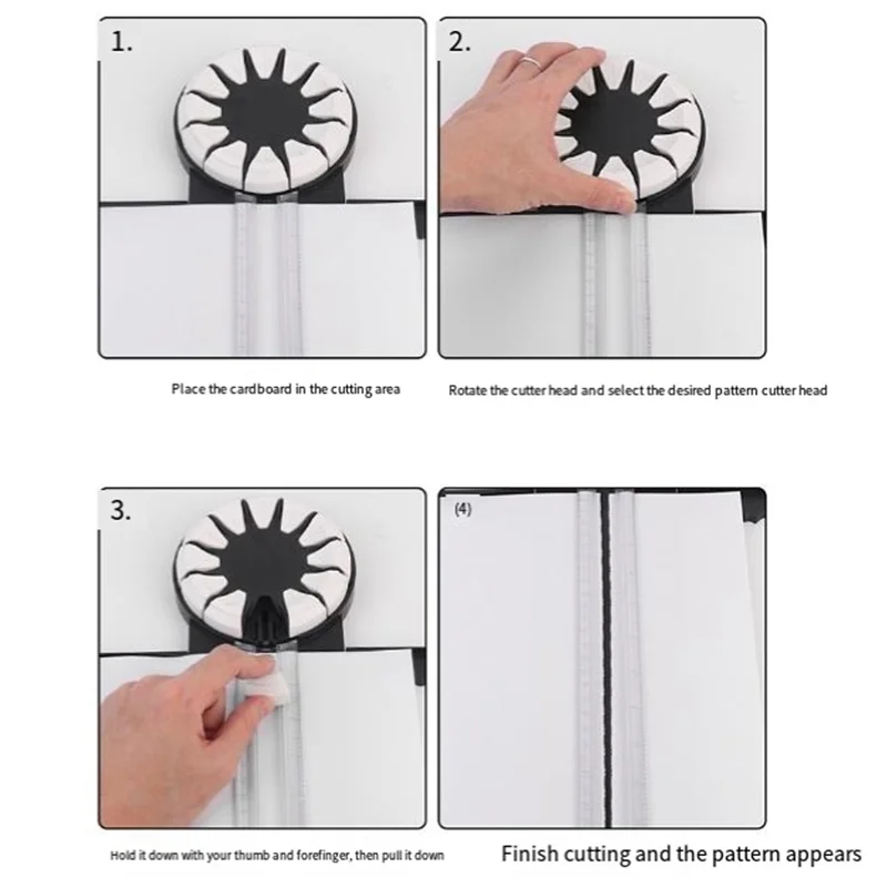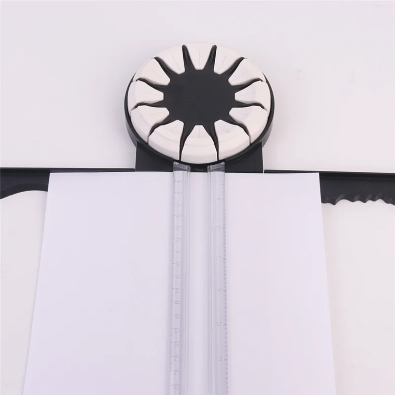 Twelve types of cutter heads: This manual paper cutter includes types of cutter heads such as straight cutting, point cutting, and folding head (for folding). It can cut wavy lines of different shapes. It is equipped with folding rulers on both sides.