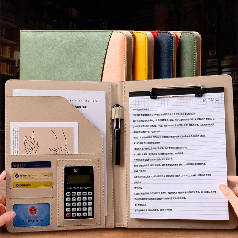 A4 Business PU Leather File Folder Padfolio Clipboard for Document Splices Folder Calculator Meeting Writing Pad for Office