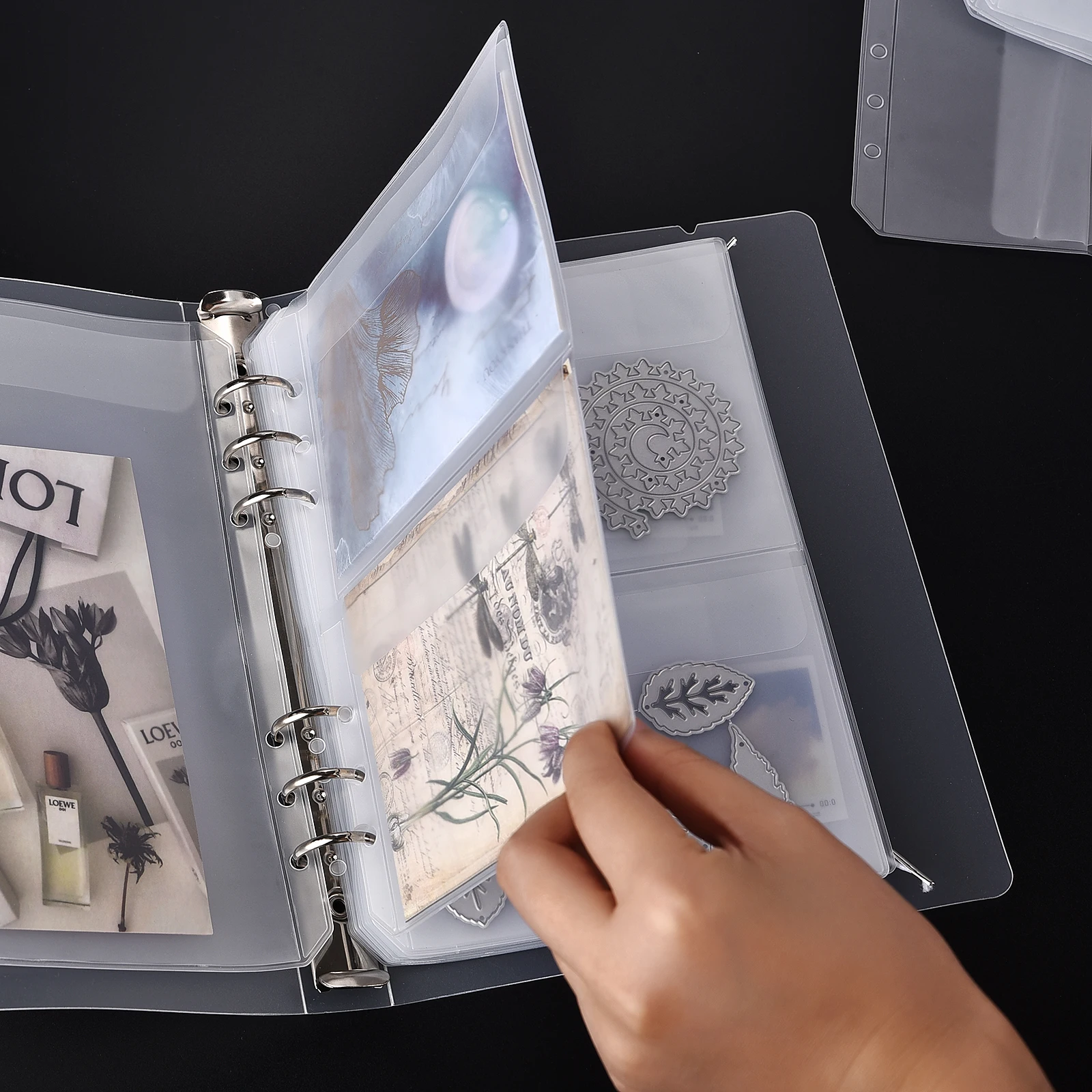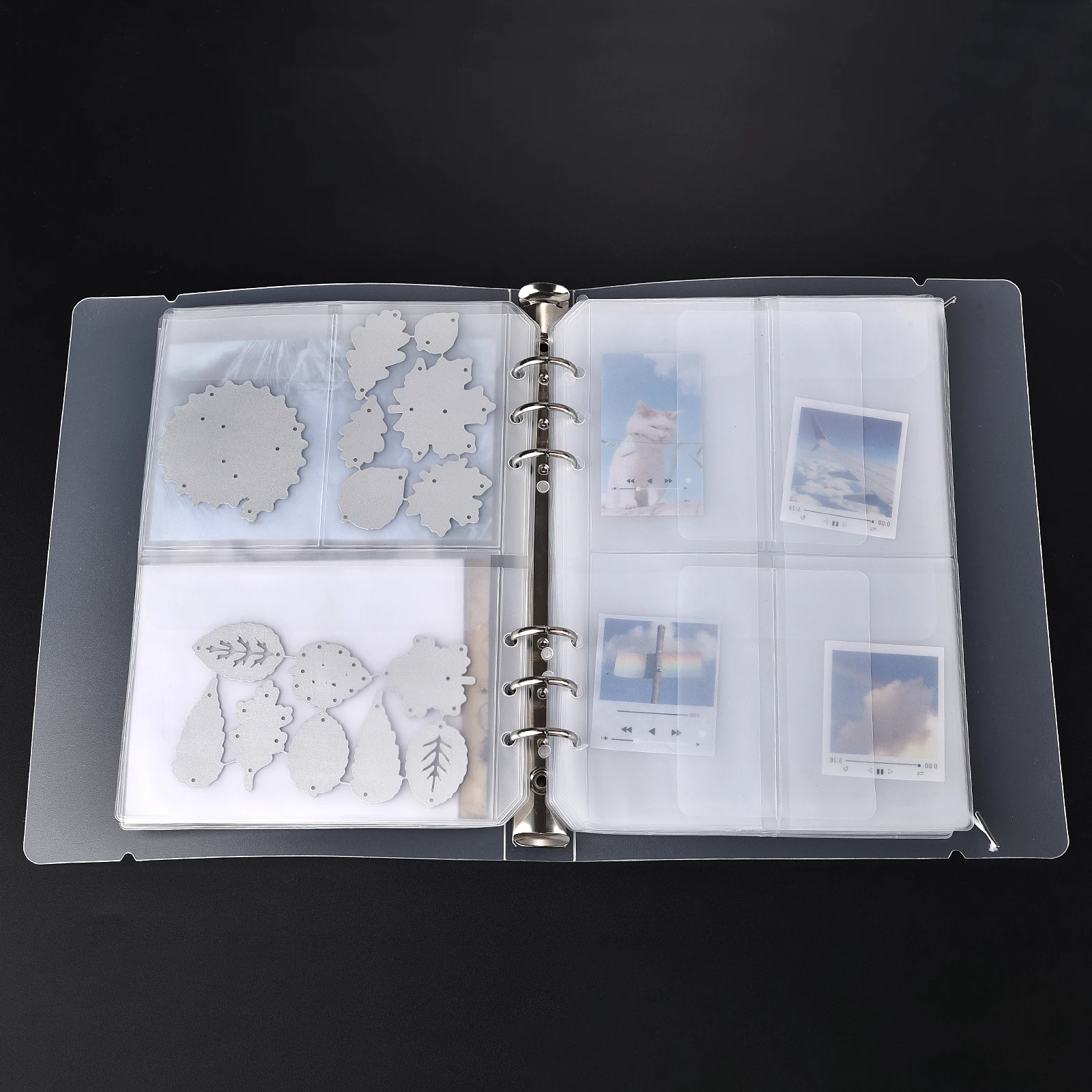 A5 6-Hole Strap Storage Clip Folders Scrapbook Cutting Die Storage Organizing Sticker Storage Transparent Bag Book Booklet