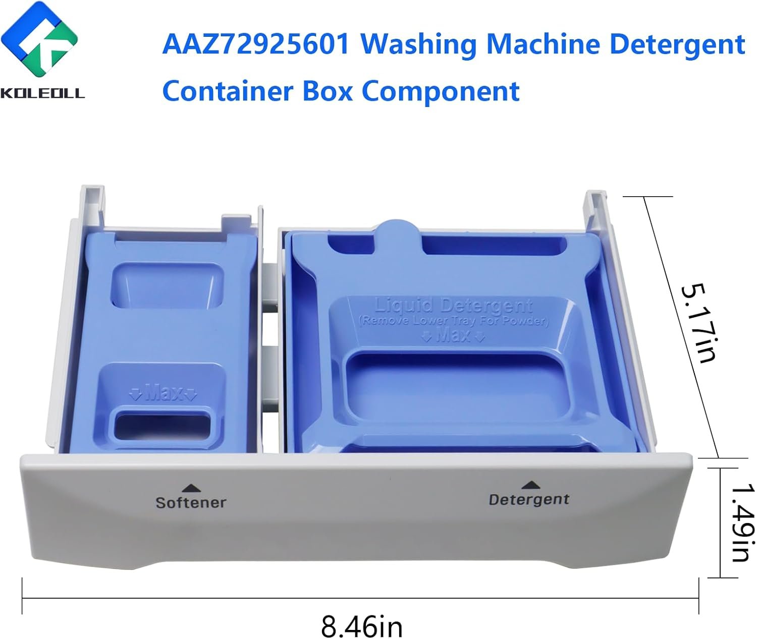 Assembly Composition:8.46×5.17×1.49 In,The AAZ72925601 washing machine detergent caddy assembly includes compartments for detergent, fabric softener and bleach