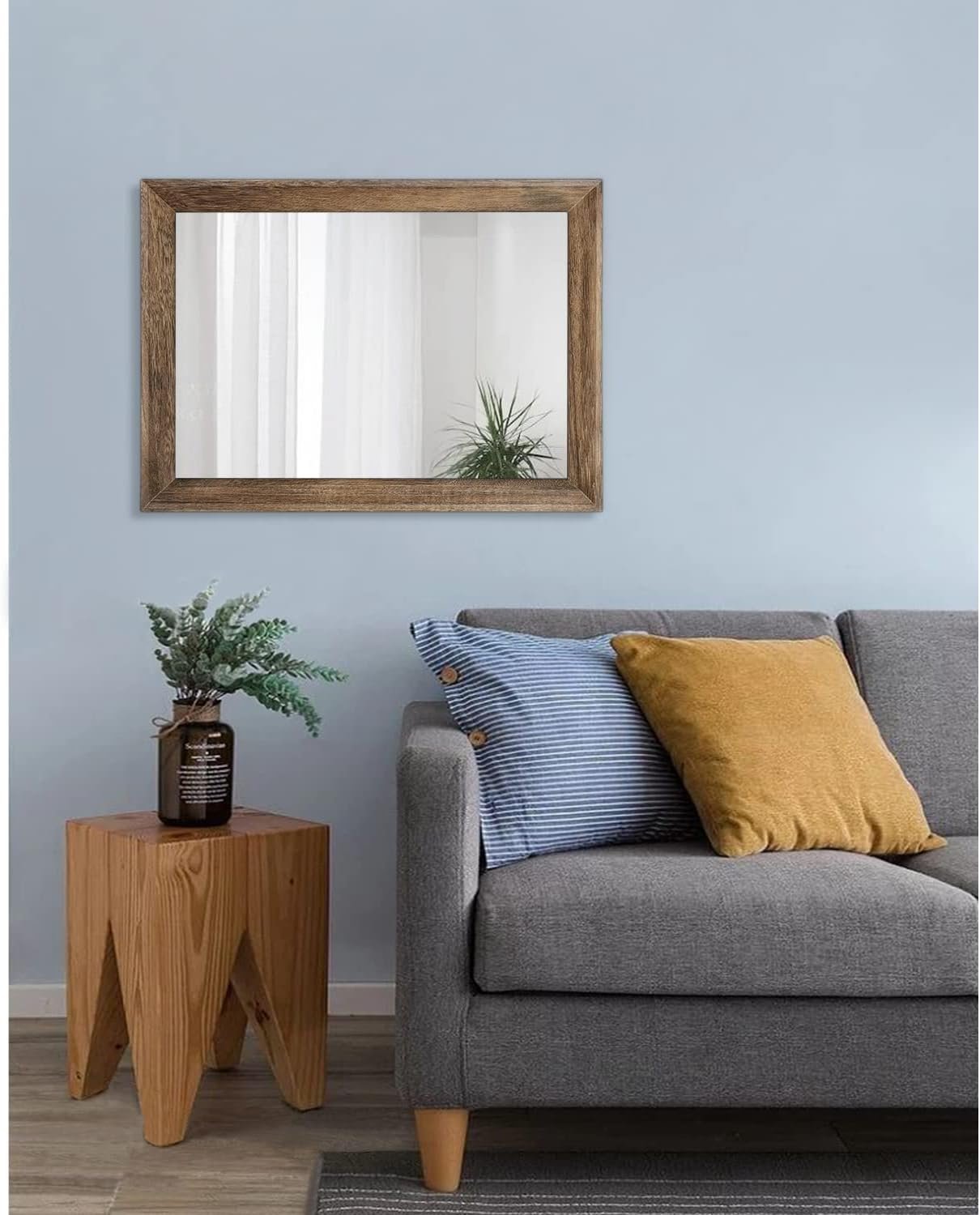 Stylish&Eye-Catching:Wooden border in brown color with subtle for a rustic touch. This farmhouse style wall hanging mirror can keep your space looking country-chic.