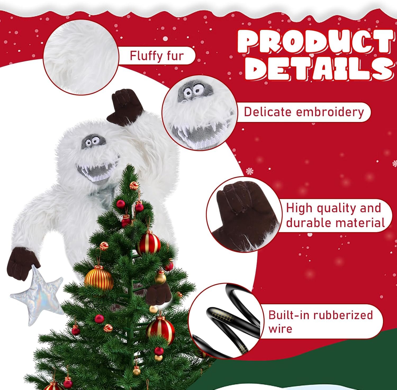 PREMIUM QUALITY MATERIAL: The white snow monster Christmas tree topper is made of high quality plush and PP cotton, ensuring that it brings you joy while safeguarding the health and safety of your family. In addition, the abominable snowman plush is soft and cozy, not easy to fall off, so you can enjoy the festive atmosphere and feel the beauty of quality life at the same time.