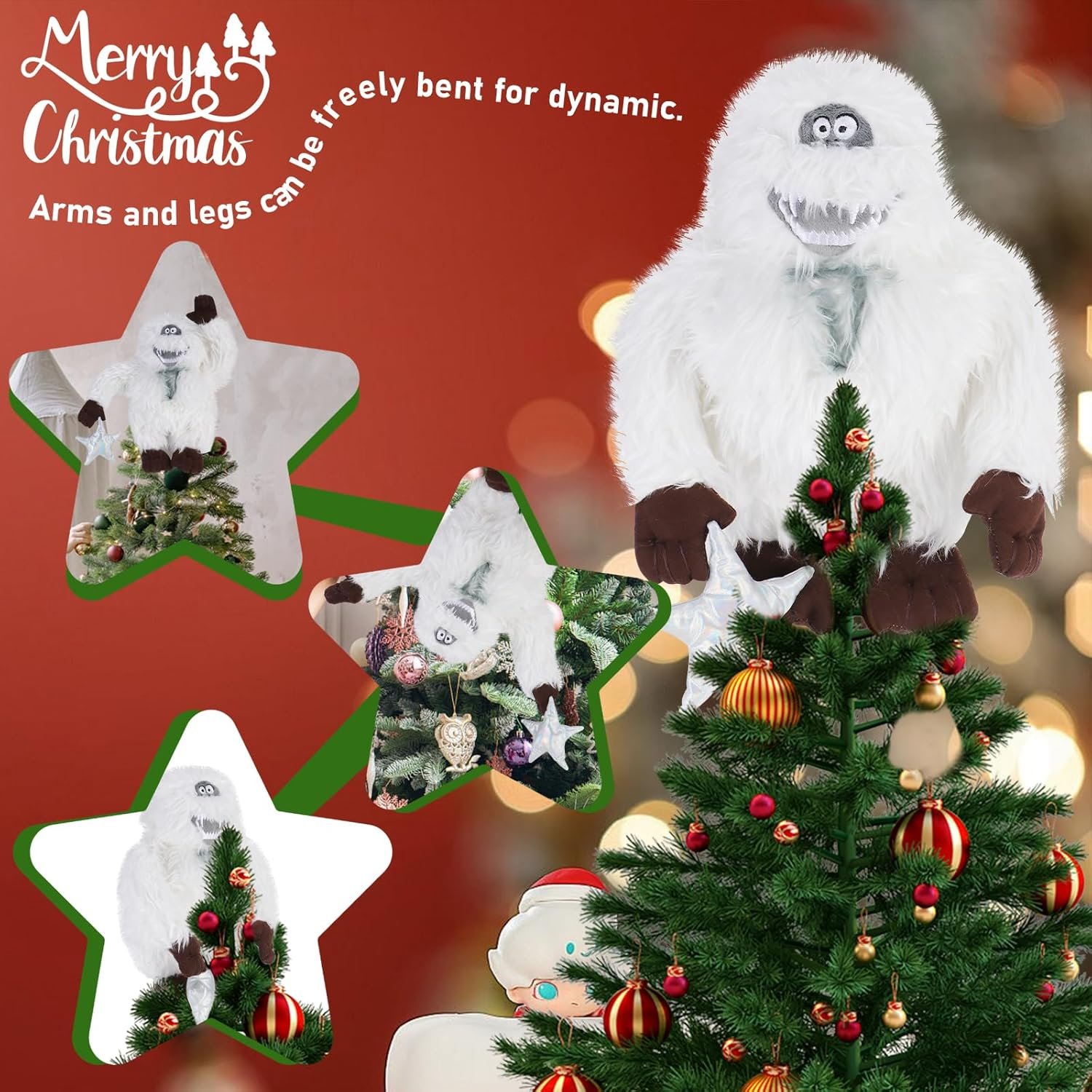Abominable Snowman, Christmas Tree Topper Abominable Snow Monster Ornament, Snow Monster Stuffed Christmas Tree Topper, Poseable Stylized Abominable Snowman Ornament