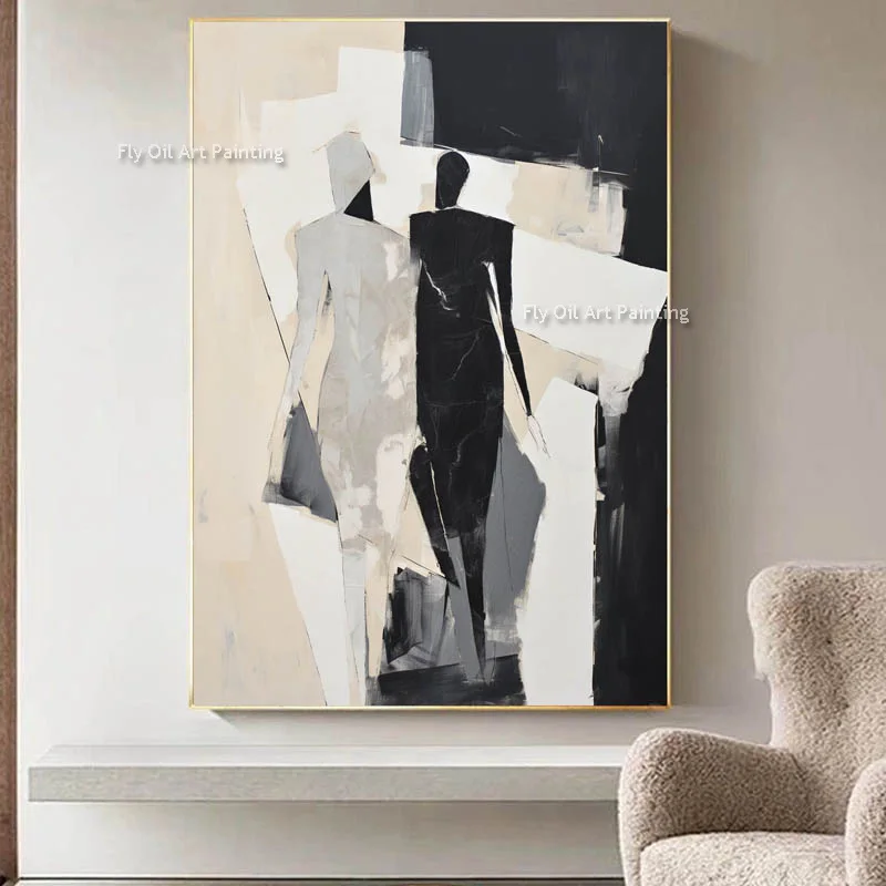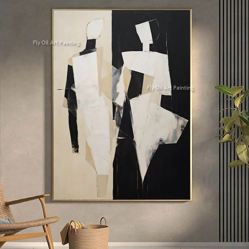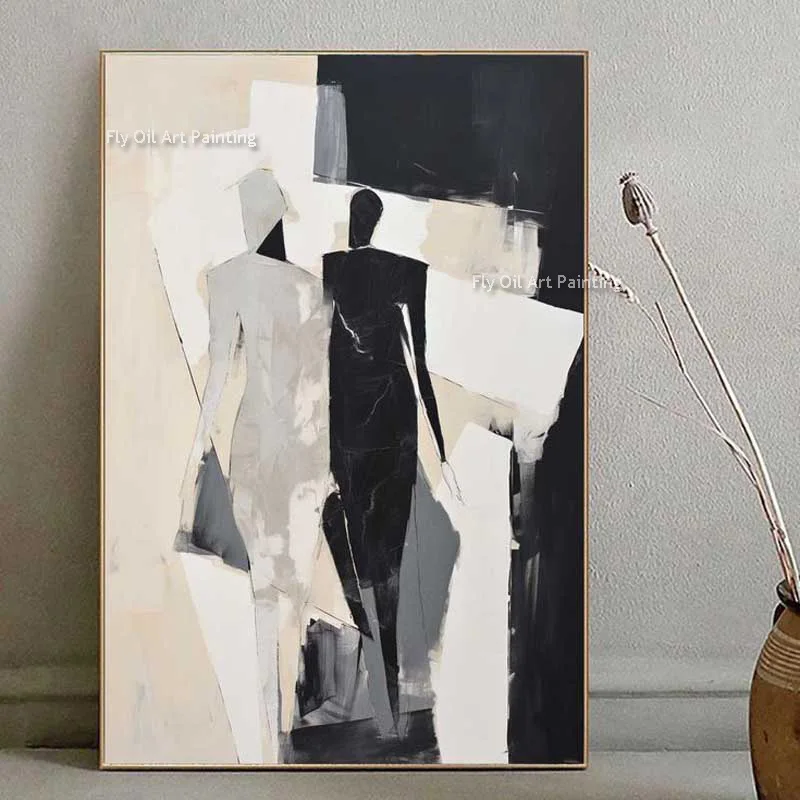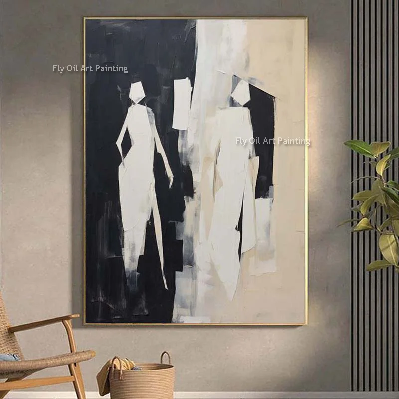Abstract Modern People Oil Painting Black And White Abstract Canvas Painting Hand Painted Impression Wall Art For Home Decor