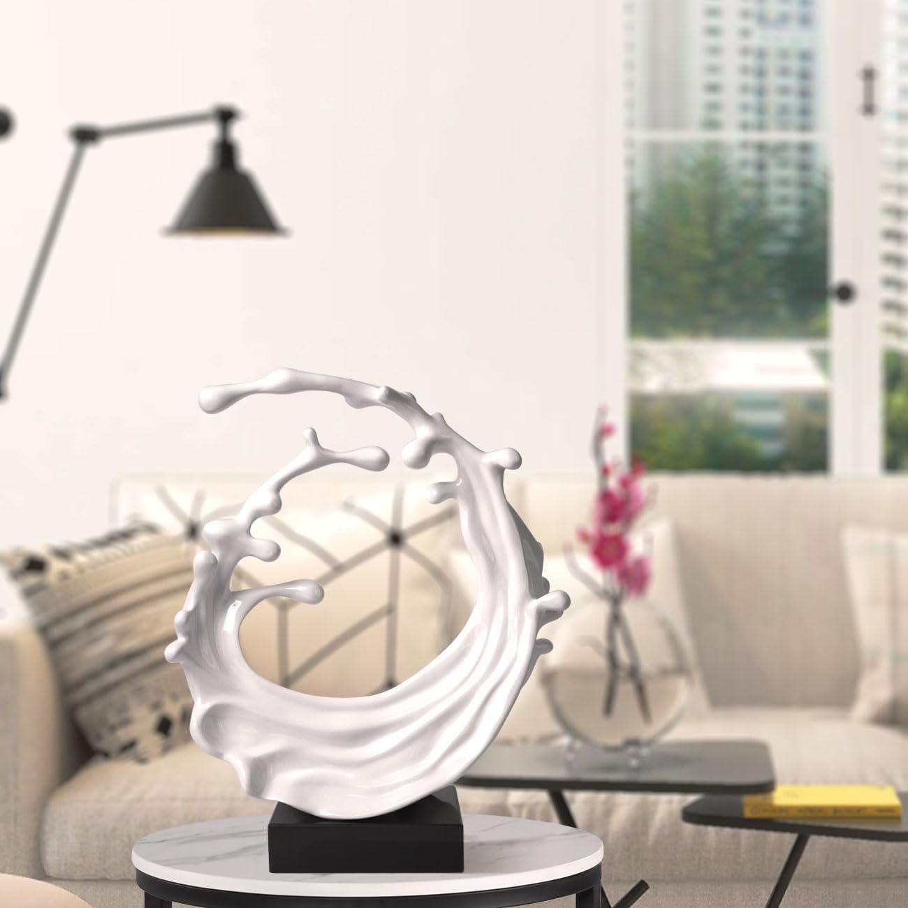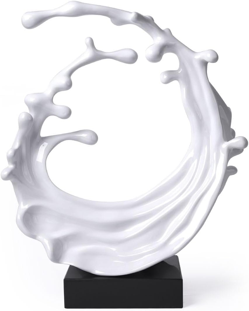 Abstract Sculpture Decor Modern Arts Sea Wave Figurine Table Centerpiece Statue Polyresin White 16.5 inch