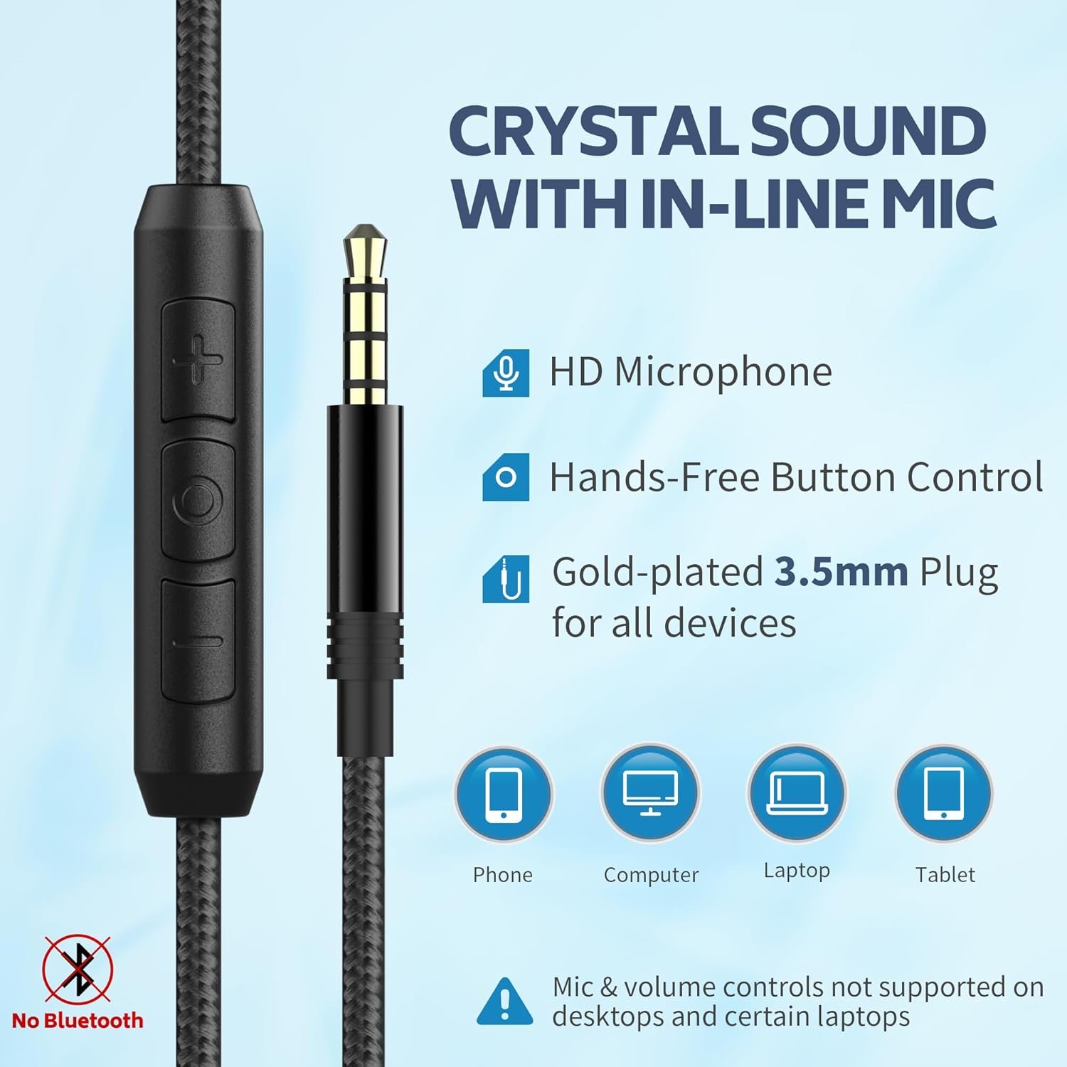 Crystal Sound with Wide Compatibility: With HD Microphone ensures excellent voice pick-up and automatically suppress wind noise for optimized calls whether you are in work, study or gaming. 3.5mm gold-plated plug is widely compatible for 3.5mm audio jack devices such as phones, fire tablets, Chromebook, laptops and etc.