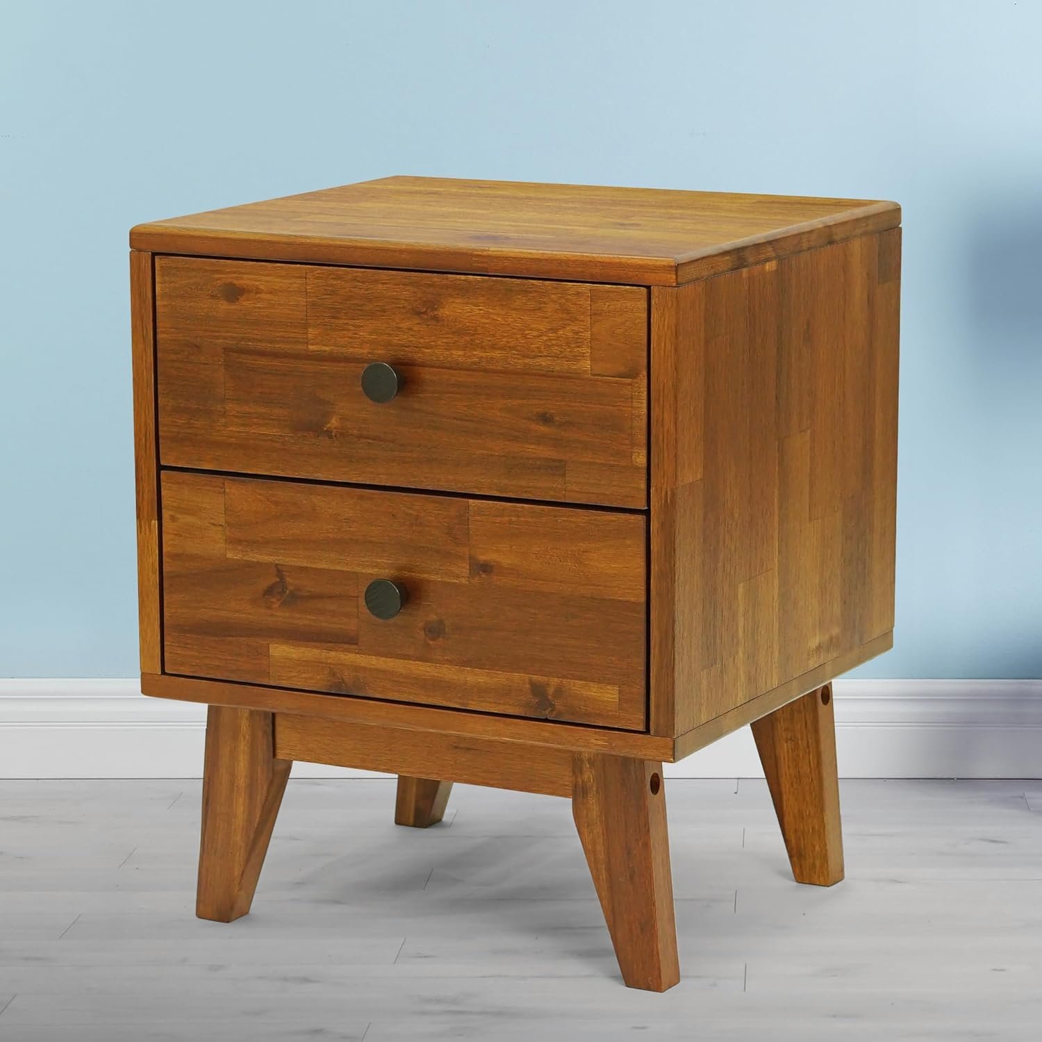 Acacia Silvia Nightstand with 2 Drawers, Solid Wood Bedside Table, Table with Storage Drawers for Bedroom, Bedside End Table with Drawer and Storage Space, Caramel