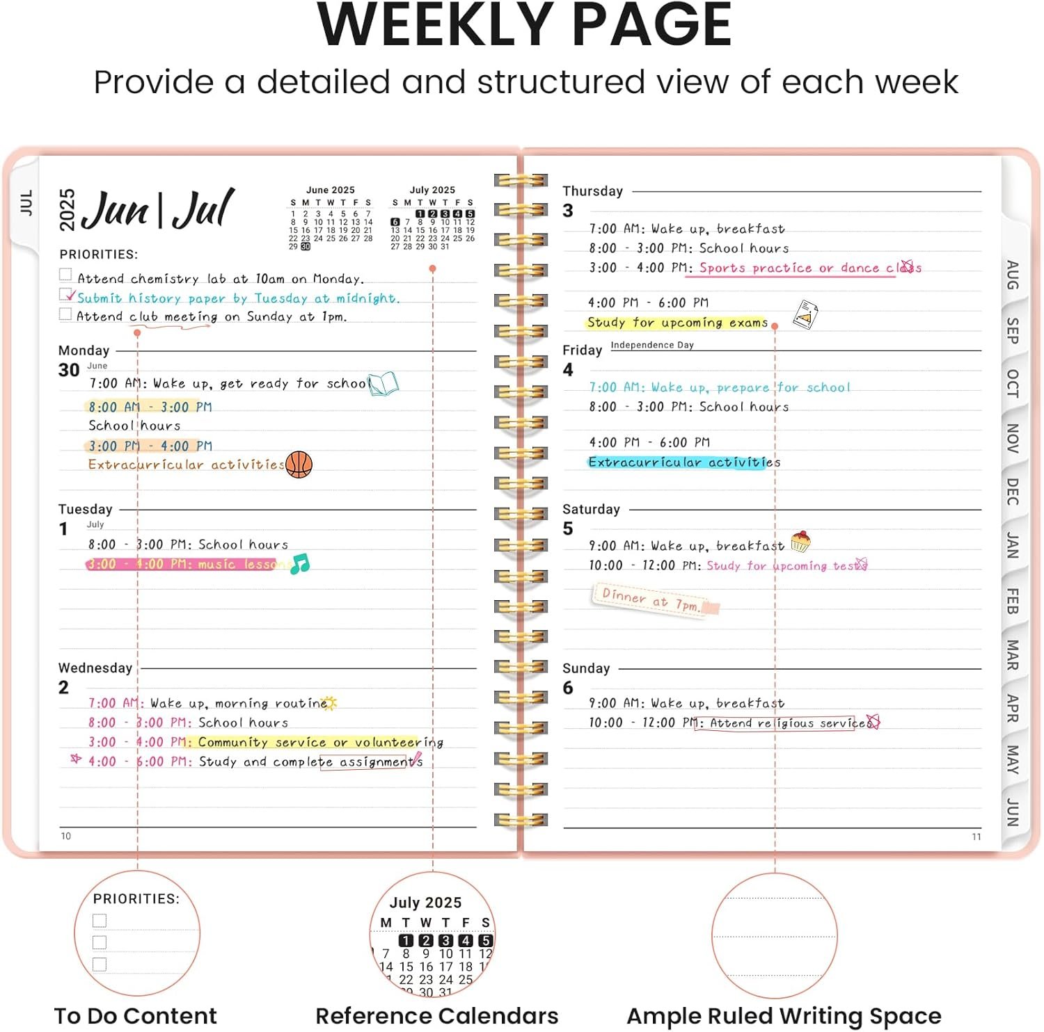 Comprehensive Planning: Planner 2025-2026 covers the school year from July 2025 to June 2026, offering 12 months (includes 53 weeks) of planning. It includes monthly and weekly calendar pages, providing ample room to manage your schedule, set goals, and track progress. It’s ideal office school supplies for keeping your entire year organized.