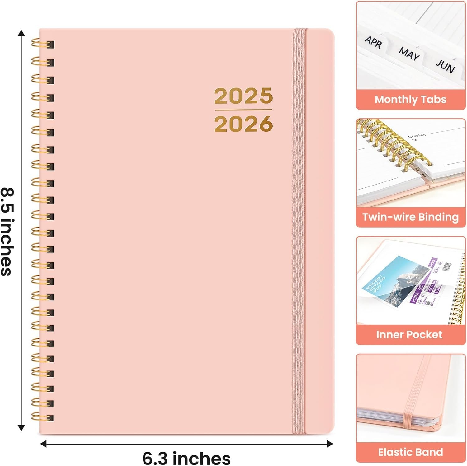 Academic Planner 2025-2026 For Women & Men, Monthly and Weekly Calendar Planner, Jul 2025 – Jun 2026, A5 (6.3″ x 8.5″), Teacher Student Planning Book with Tabs, Ideal for Office School Supplies – Pink