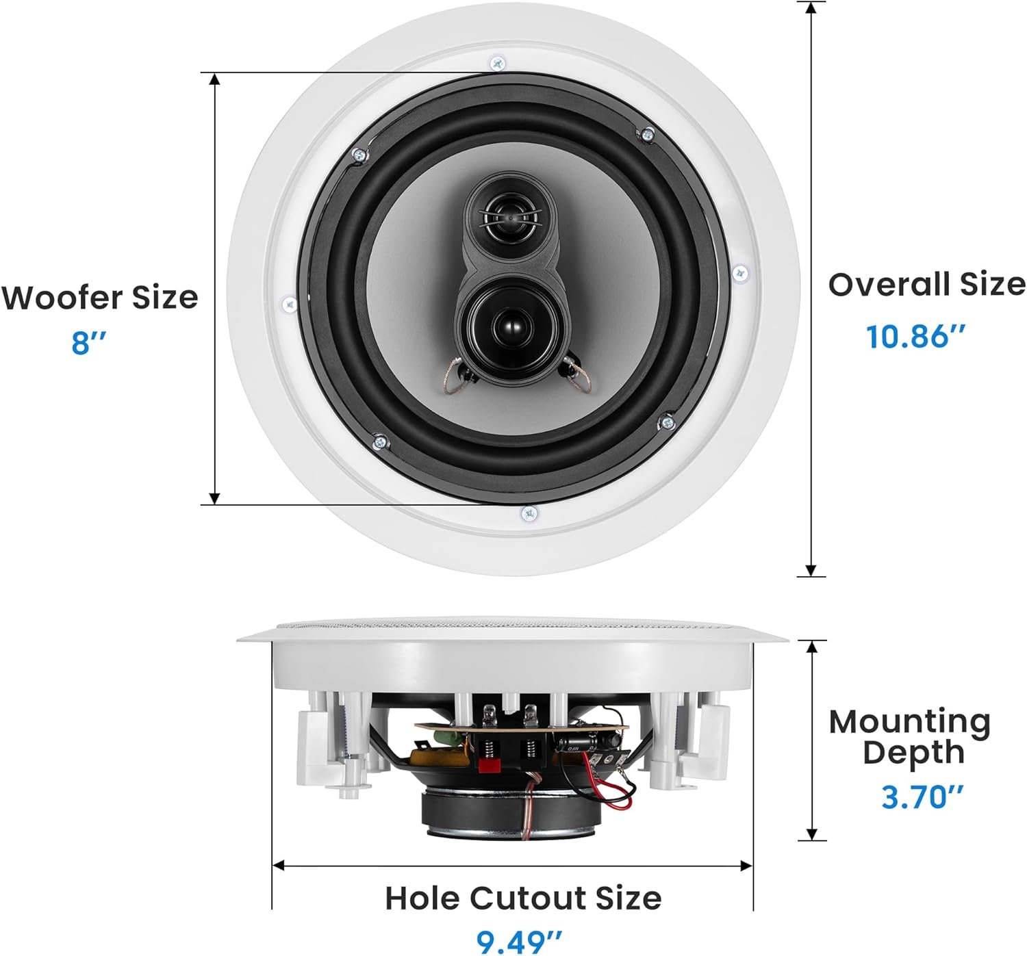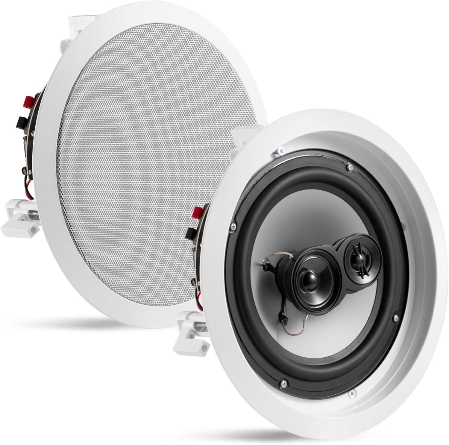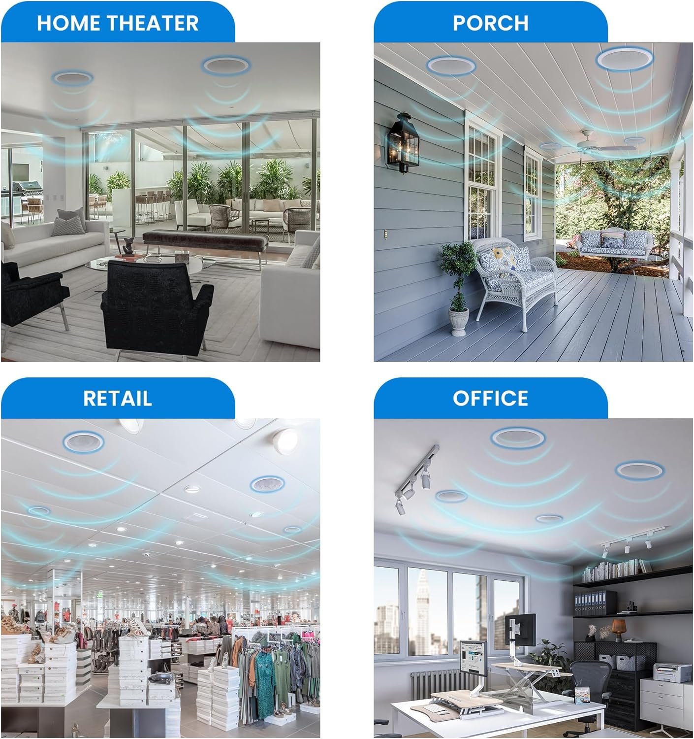 FLUSH MOUNT IN CEILING SPEAKERS – Wide sound dispersion designed speakers easily integrate with new and existing audio systems, traditional Passive speaker design, simply drive power from your home audio receiver or amp