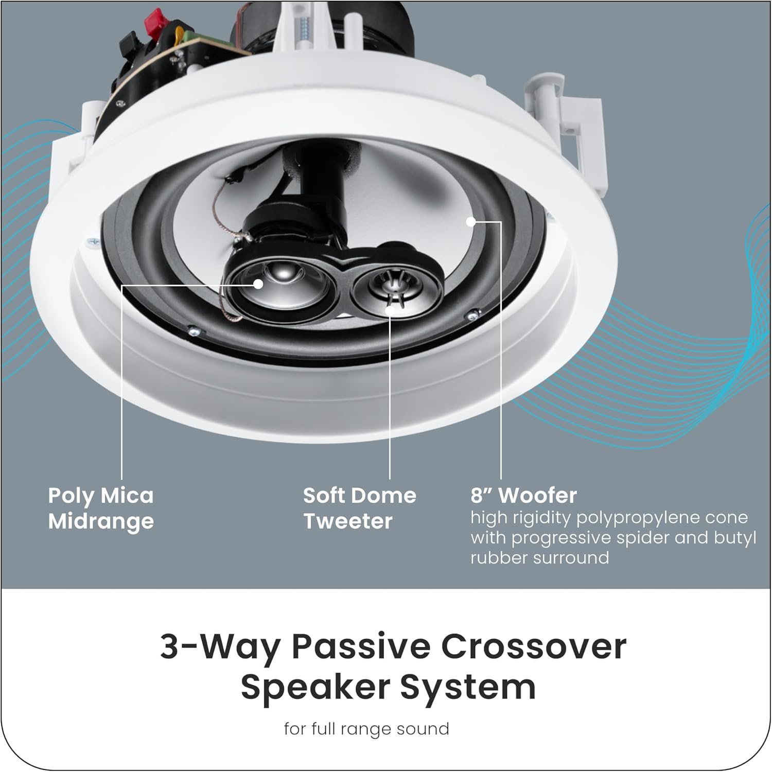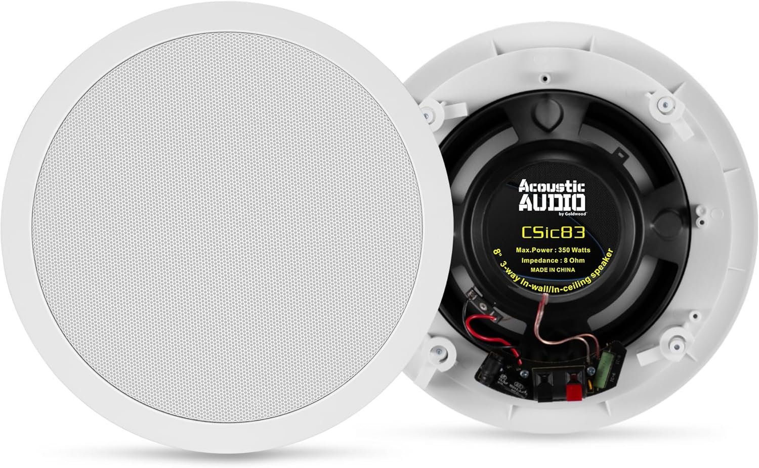 Acoustic Audio by Goldwood CS-IC83 8” 3-Way In Ceiling Home Theater Speaker System (White, 5 Speakers)