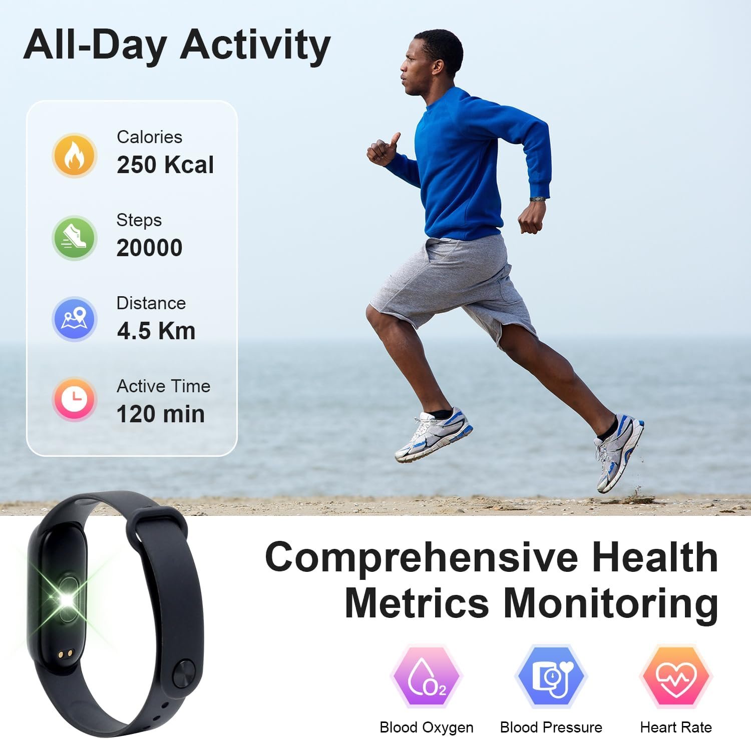24/7 Heart Rate and Sleep Tracker: Get real-time heart rate updates and receive alerts for high heart rate. Gain insights into your sleep patterns and quality to make adjustments for better sleep habits.