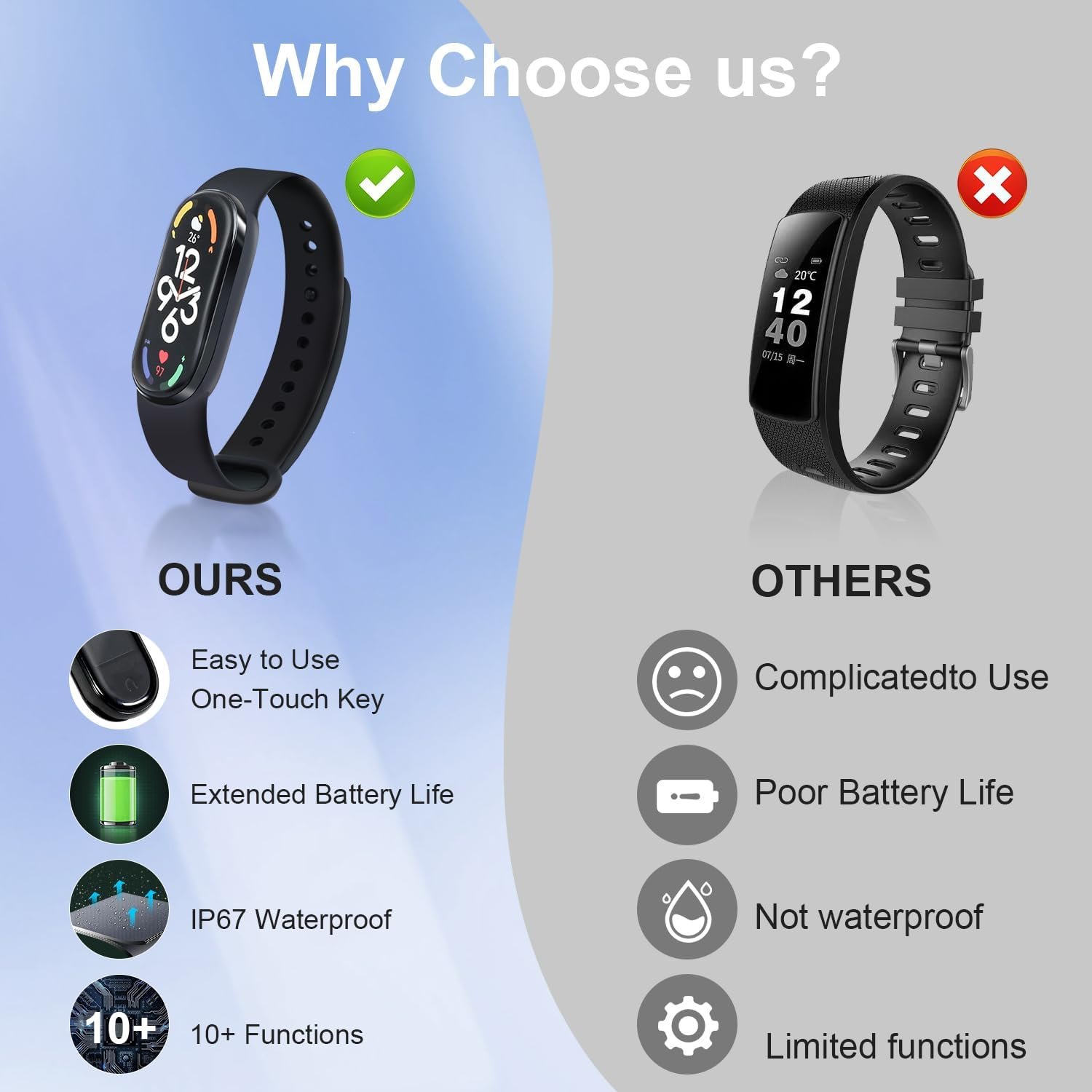 Your Ultimate Fitness Partner: Take charge of your fitness journey with 11 built-in sports modes. Record and track key metrics such as distance, speed, heart rate changes, and calories burned during various workouts. With a water-resistance, can accompany you in any weather or water-related activities.