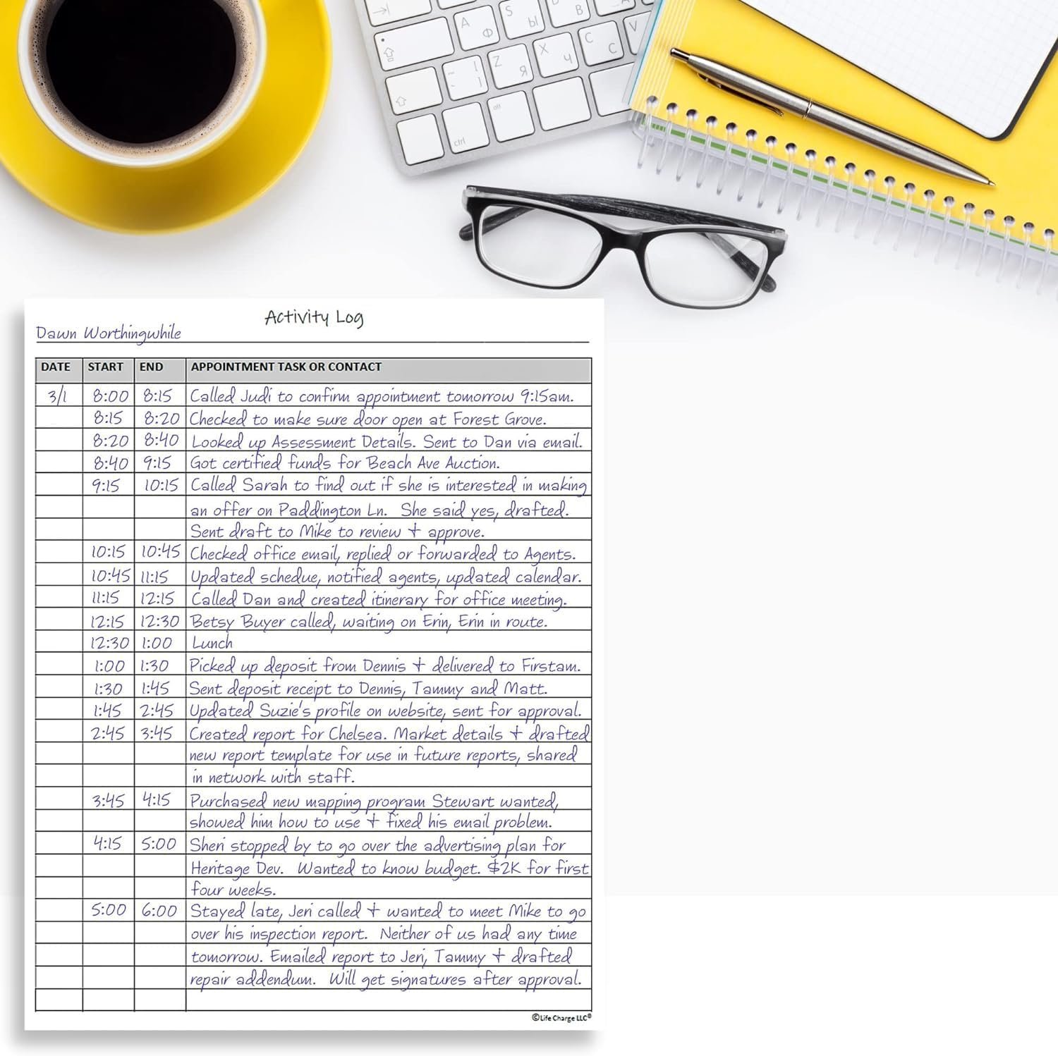Client File Folder Activity Log. Log client or customer-specific activities. If your business has customers and clients, it is important to log the specific tasks you complete on their behalf or for them. Logging the time spent in that effort is also crucial. Real Estate Agents, Accountants, Lawyers, Insurance Agents, Salespeople, etc.