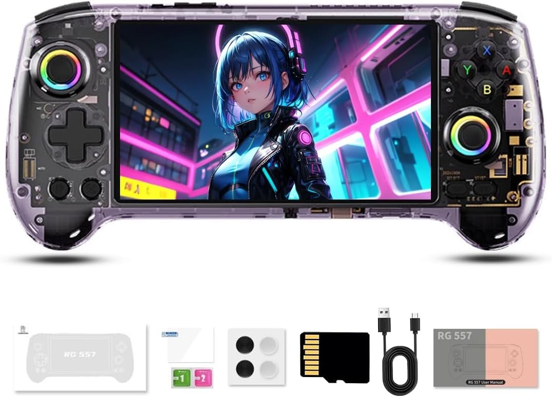 Actualia RG557 Retro Handheld Game Console, 5.48-Inch AMOLED Display Android 14 12GB LPDDR5X/256GB UFS4.0, RGB Video Game Console Gaming Player for Adult