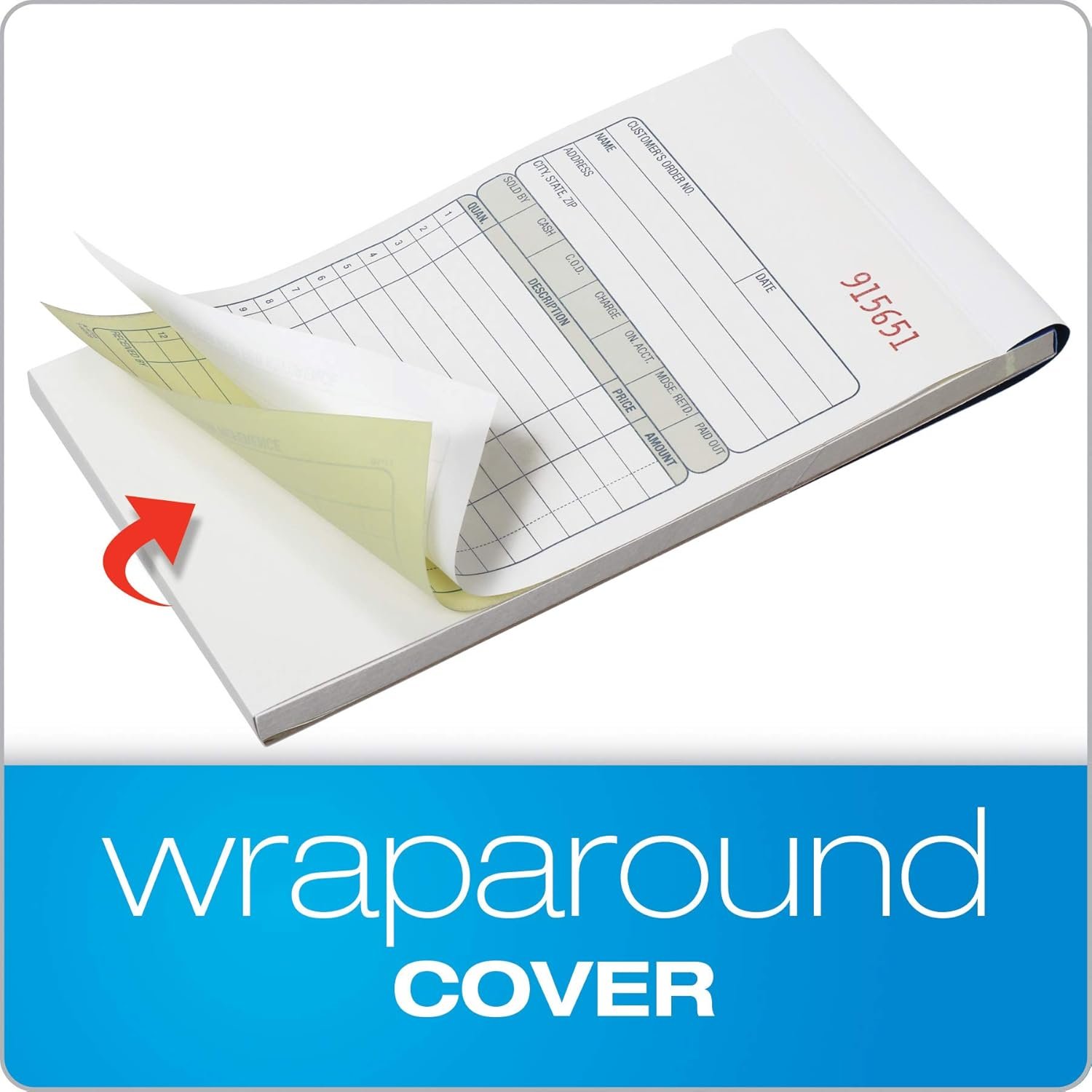 WRAP-AROUND COVER: Fold the back cover between sets to keep invoices neat and legible