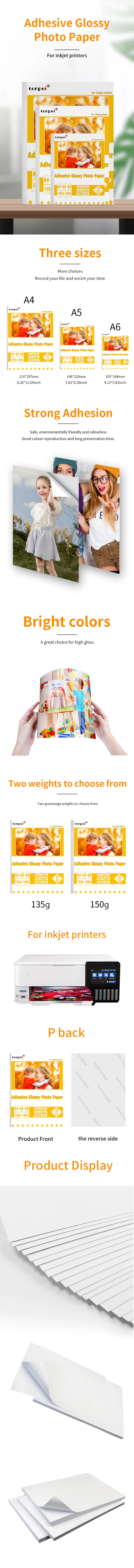 Adhesive Backed Photo Paper A4 A5 A6 Single-Sided Glossy Sticker 135G 150G Inkjet Printer Use Self-adhesive Photo Paper
