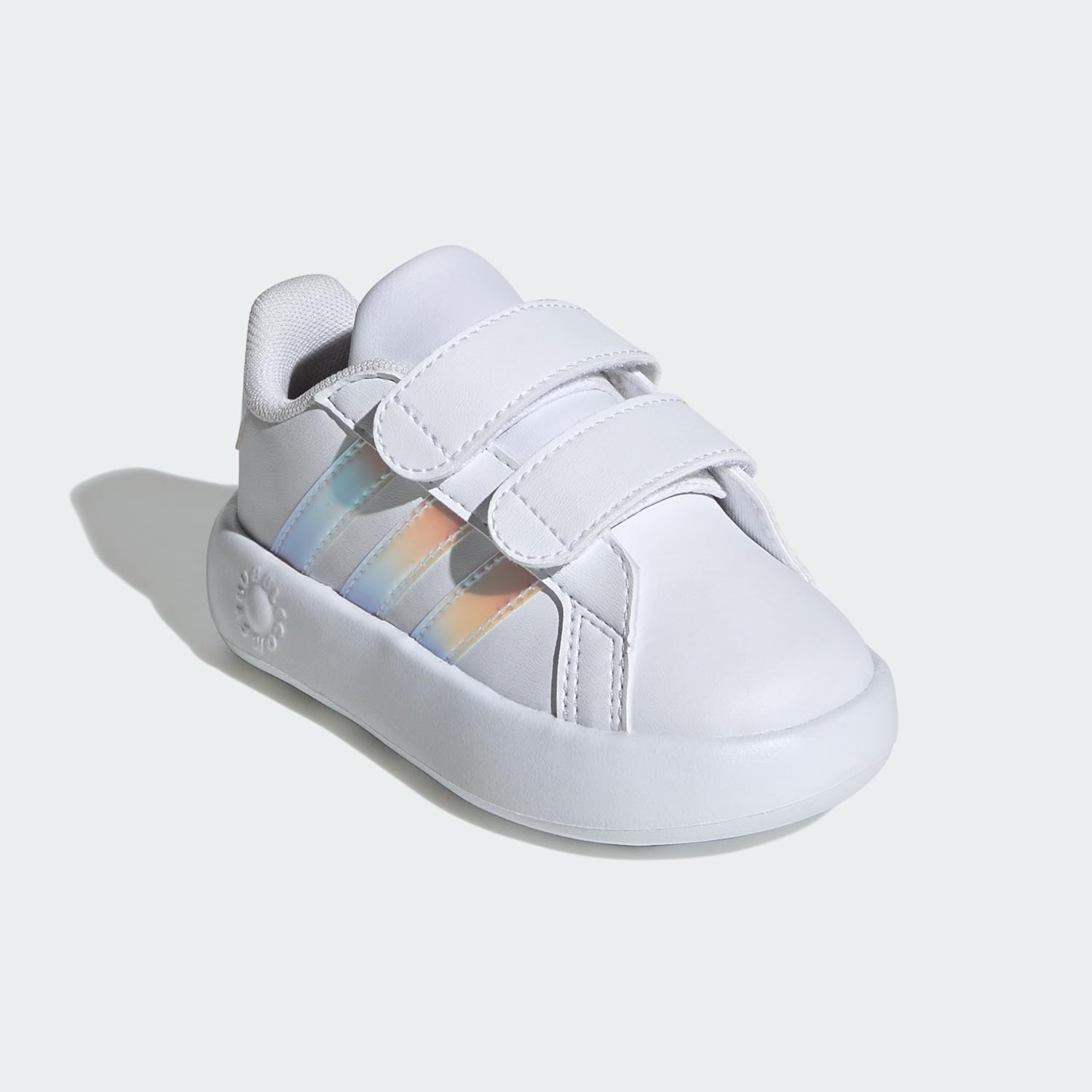 Toddlers can stay comfortable and active all day in these Grand Court tennis-inspired sneakers from adidas. They stand out with cool colors on the lightweight, flexible upper, and the adjustable hook-and-loop straps make for easy on and off. The kicks ride on an EVA midsole and outsole made in one piece for resilient comfort and grip.